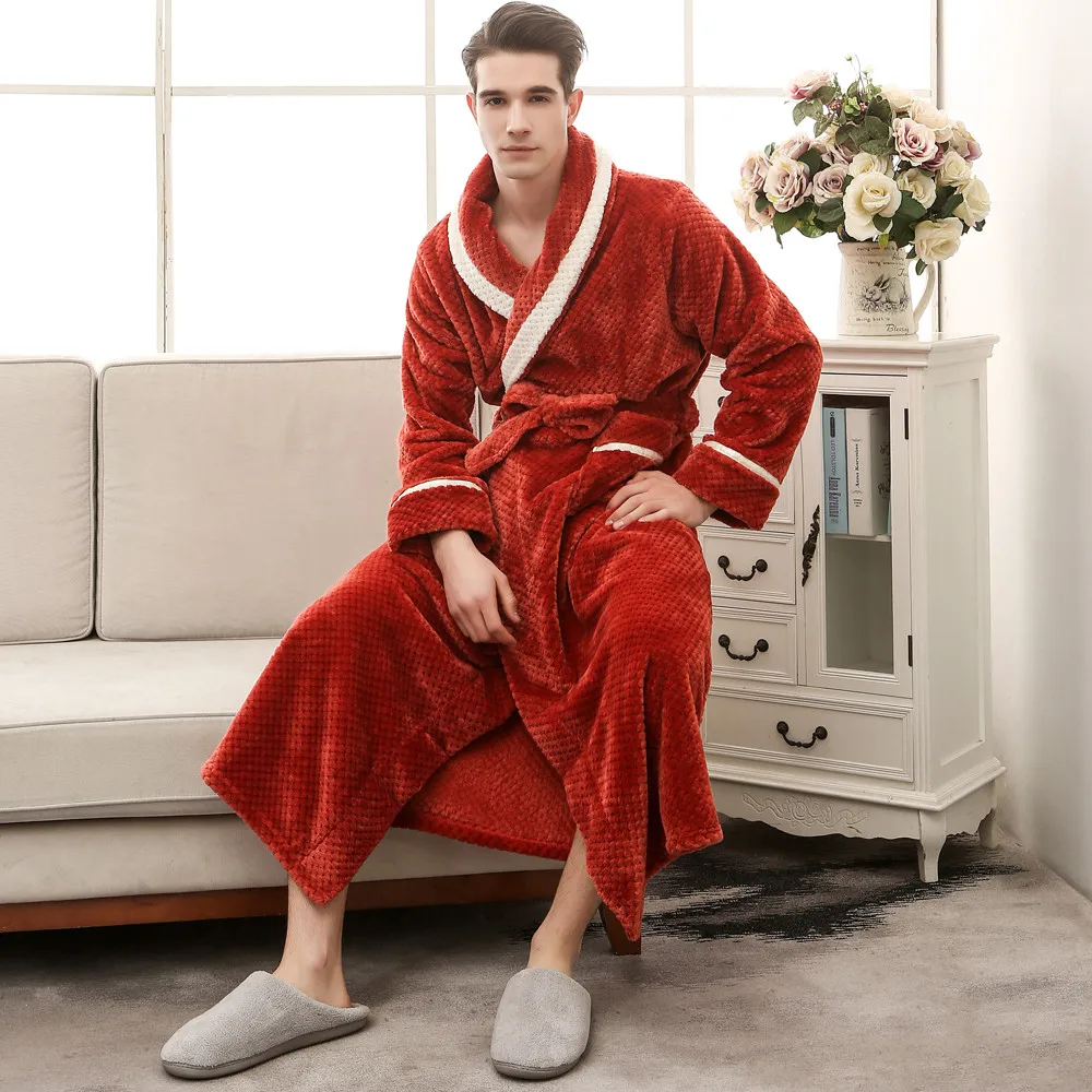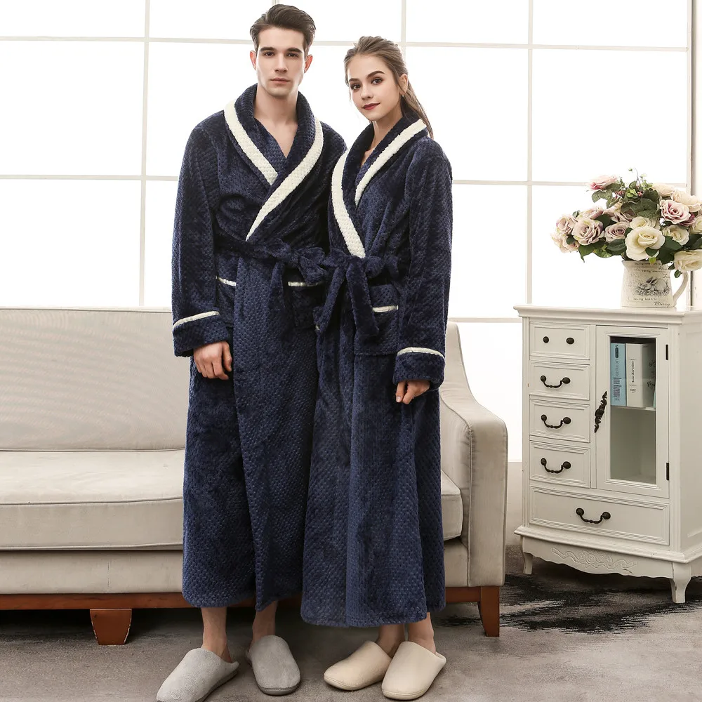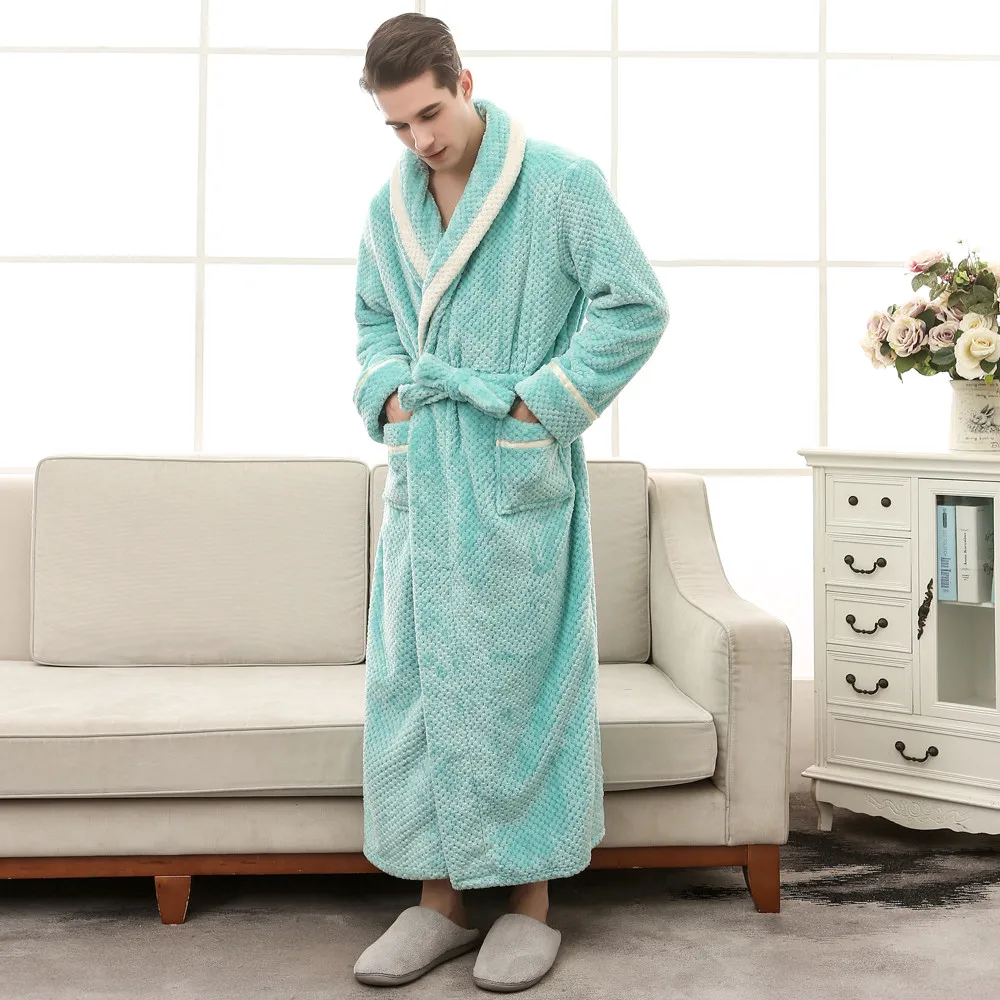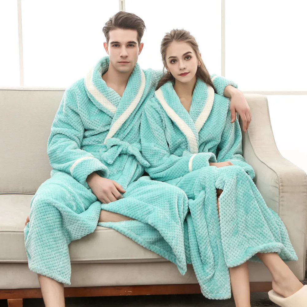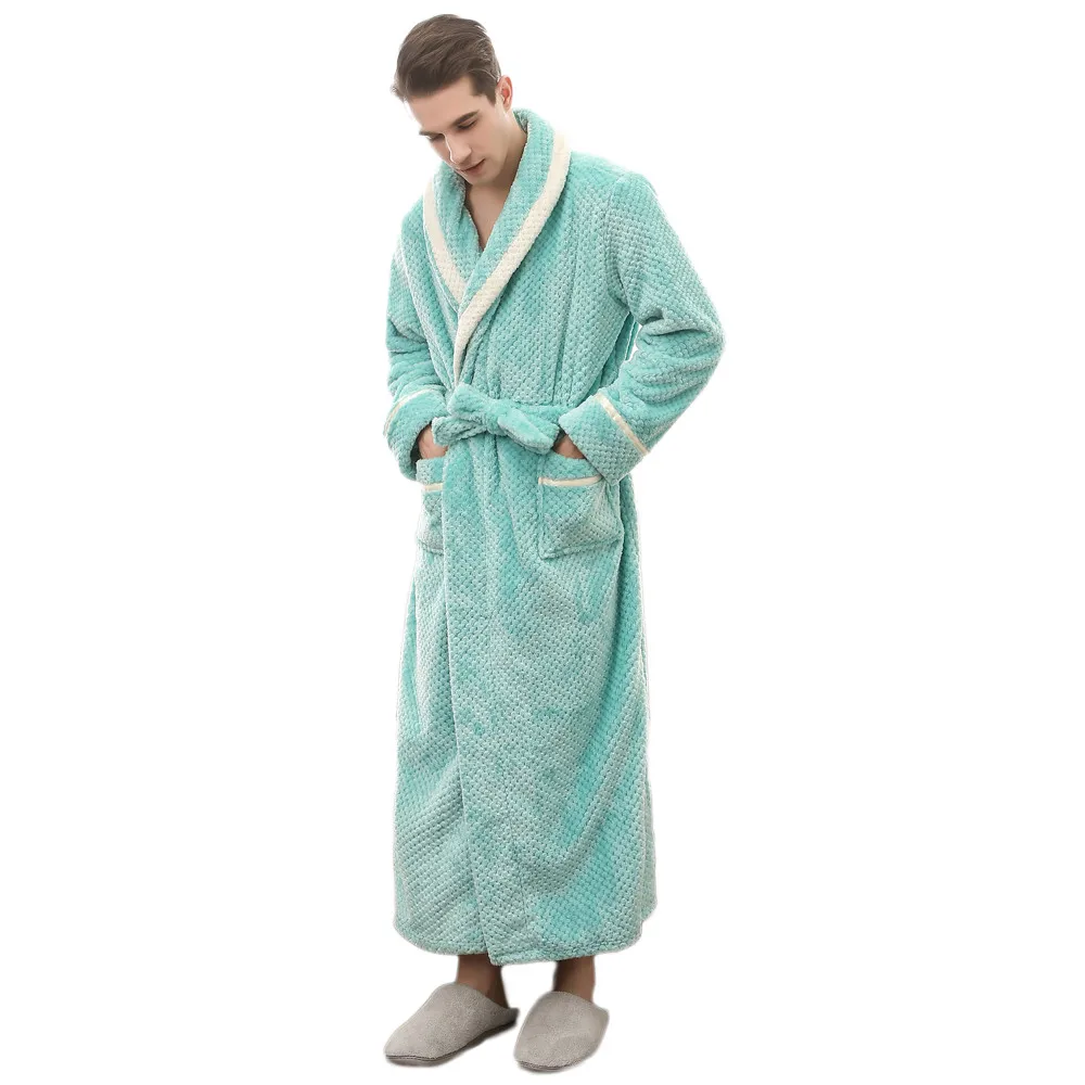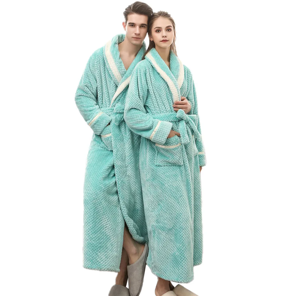 Мода 2020 унисекс зимний удлиненный коралловый плюшевый халат с шалью, халат с длинными рукавами, пальто для дам, без подкладки, одежда для сна с принтом