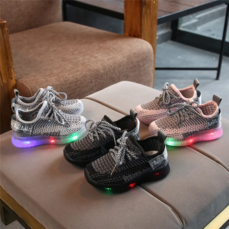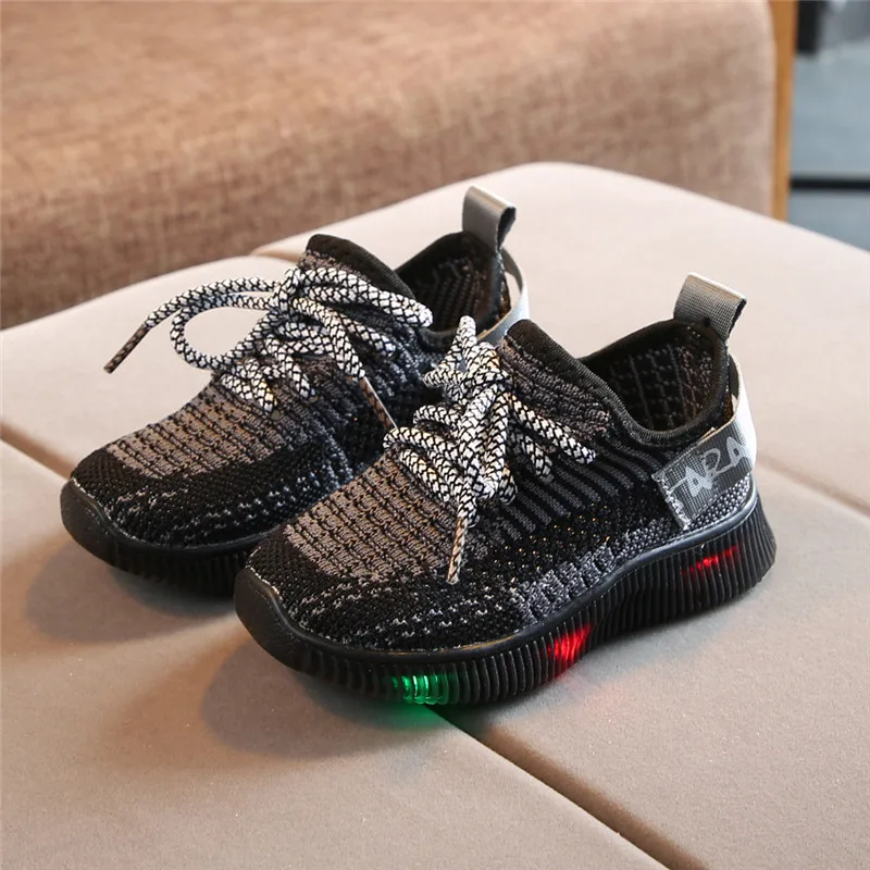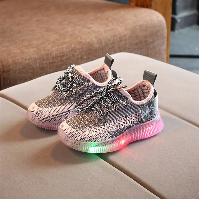 Детские кроссовки для мальчиков и девочек, повседневные сетчатые светящиеся носки со светодиодной подсветкой, спортивные кроссовки для бега, обувь, светильник для детей