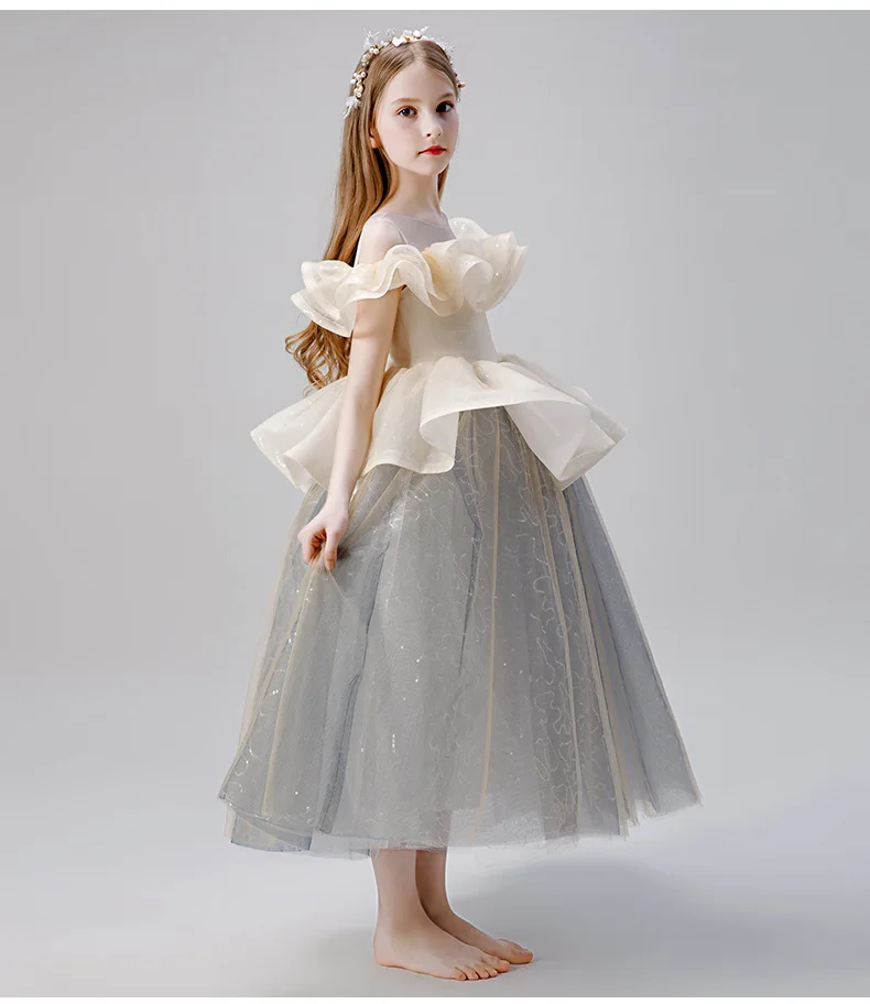 Детский костюм для подиума; Платье для выступлений на фортепиано; Праздничное платье принцессы с цветочным рисунком для девочек; Бальное платье для девочек