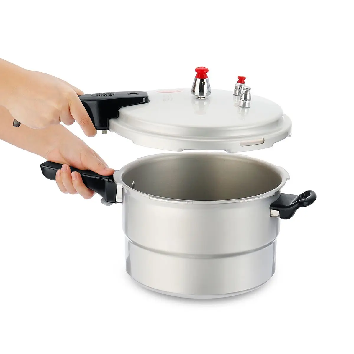1. Изготовлен из ржавчины, тяжелого алюминиевого сплава. 2. Характеристики устройства контроля давления в ручке, система герметичной крышки и клапан сброса избыточного давления 3. Крутые сенсорные ручки с защитной крышкой. 4. Простота в использовании и очистке. 5. Идеально подходит для фасоли, мяса, овощей, супов и многого другого. 6. Работает с электрической плитой и газовой плитой и т. д.