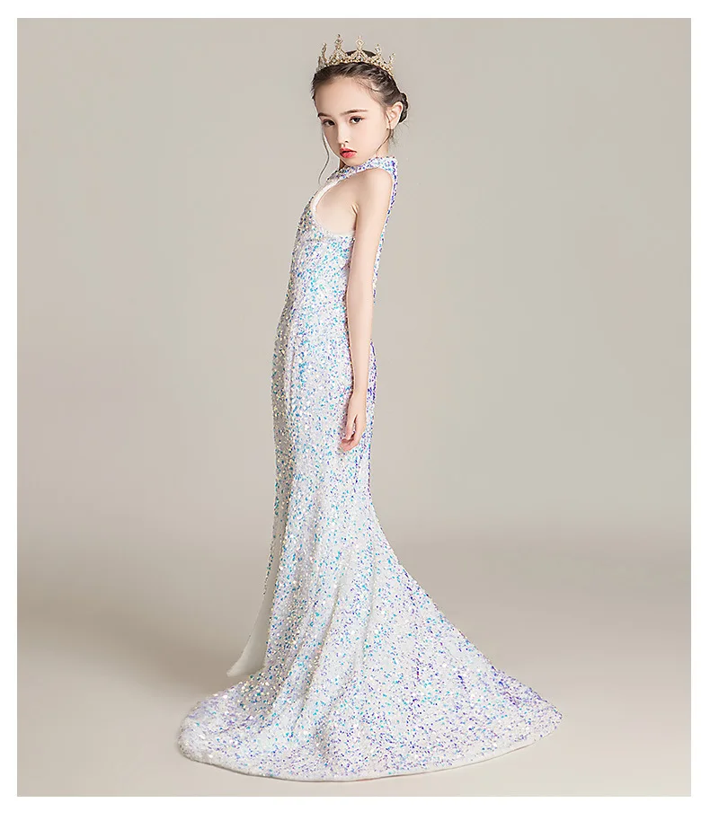Платье Русалочки с блестками для девочек-подростков 3-14 лет, винтажное благородное платье с открытыми плечами, вечернее платье для детей