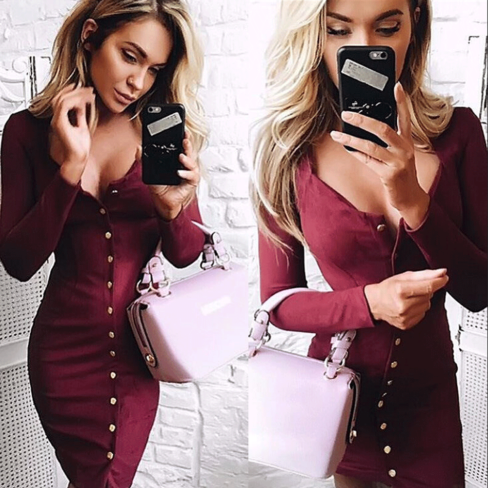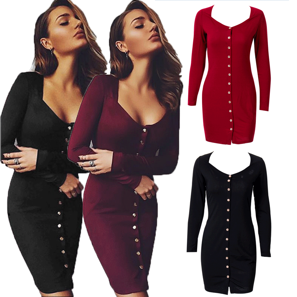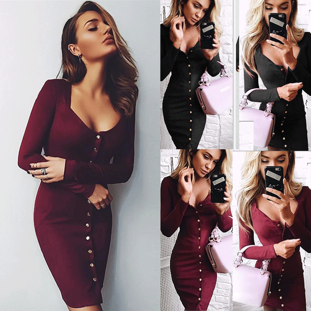 Сексуальное женское Бандажное облегающее Клубное платье с длинным рукавом