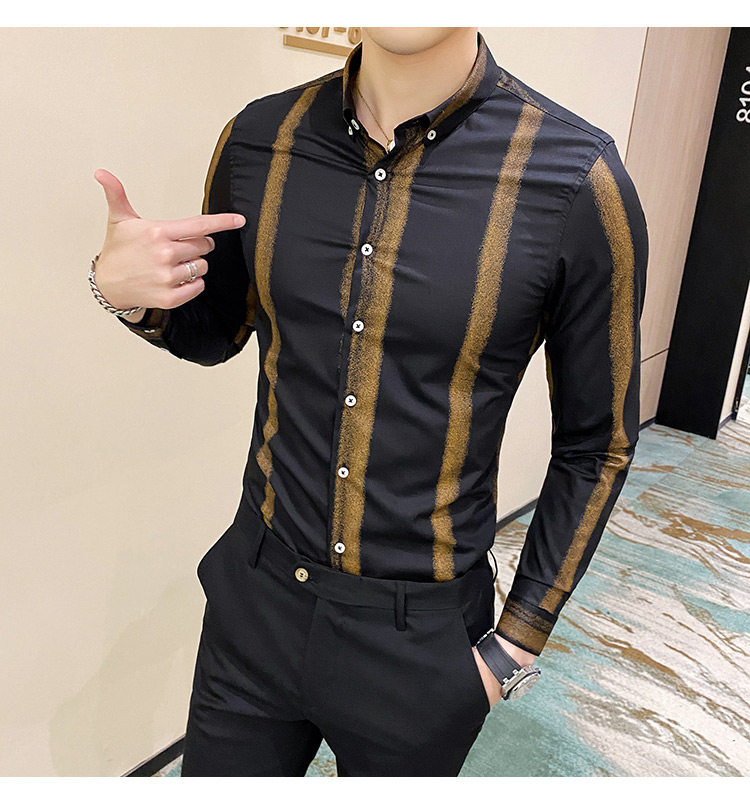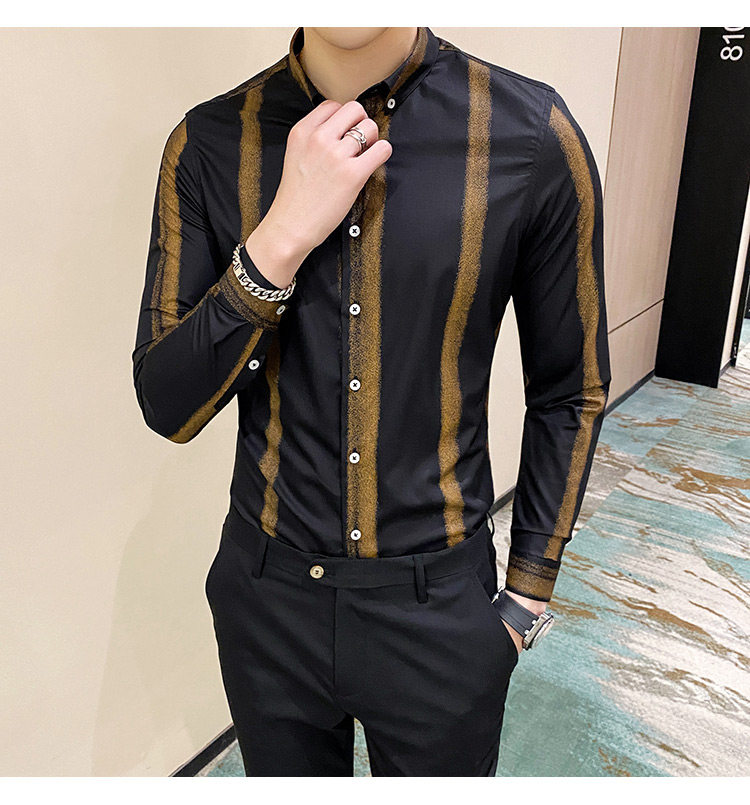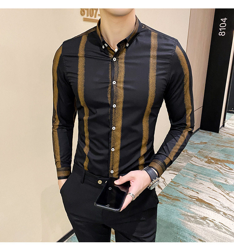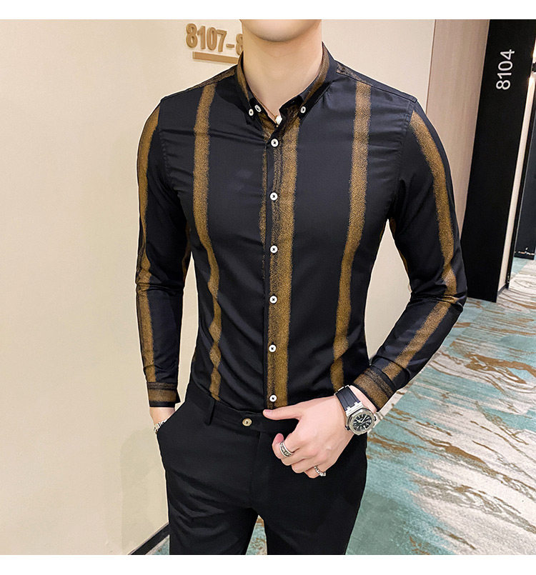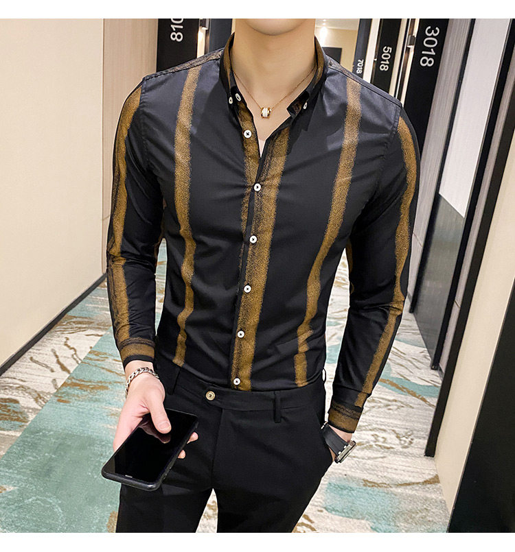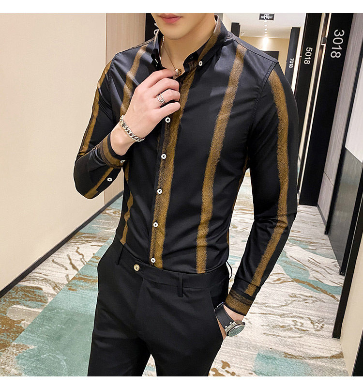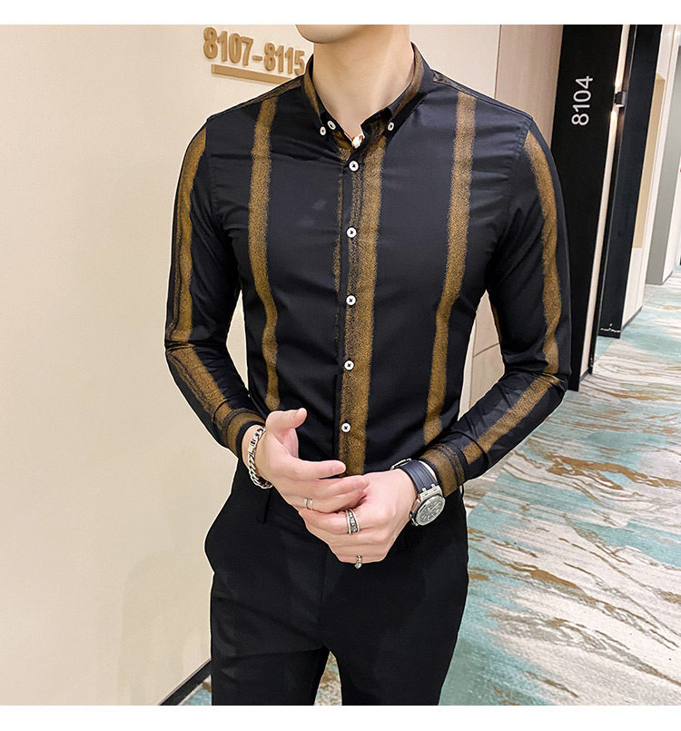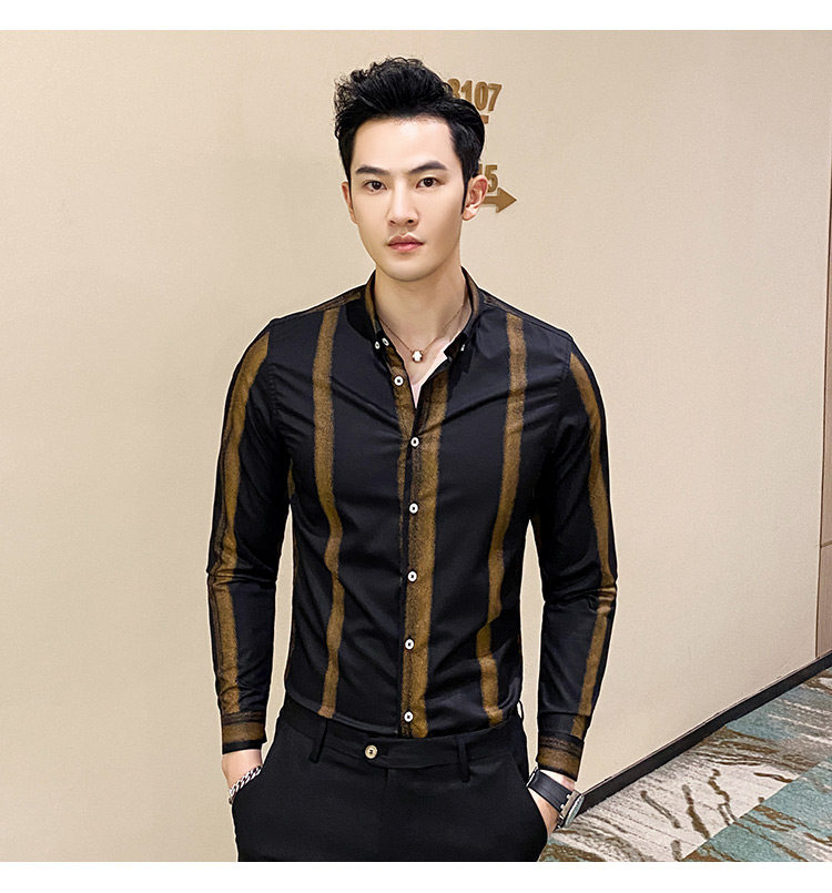 Мужская Золотая Бархатная Осенняя рубашка в Корейском стиле