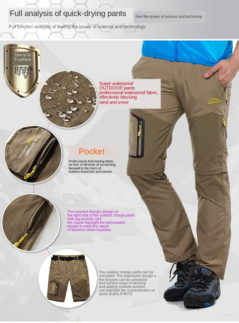 1. Супер водонепроницаемые походные брюки 2. Много карманов на молнии 3. Штаны могут быть съемными