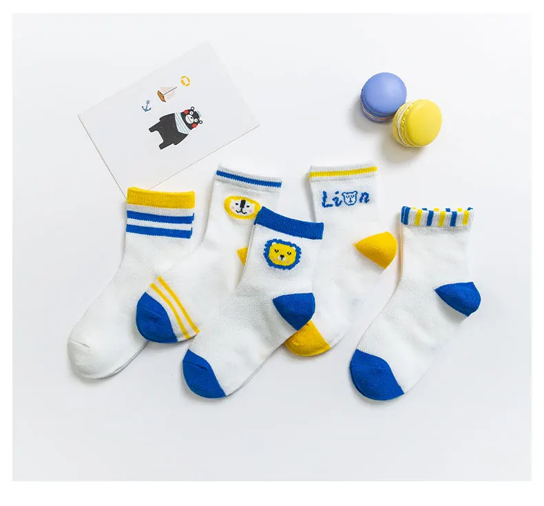 5 пар/лот, удобные тонкие дышащие хлопковые детские носки с изображением Льва, сезон весна-лето носки для маленьких мальчиков Skarpetki Miaoyoutong