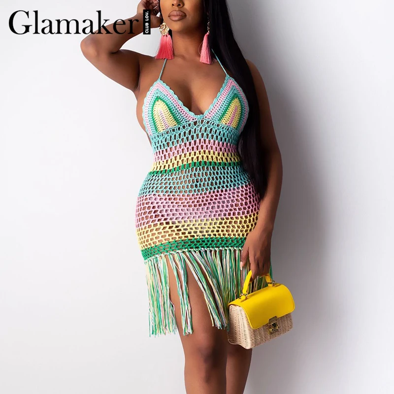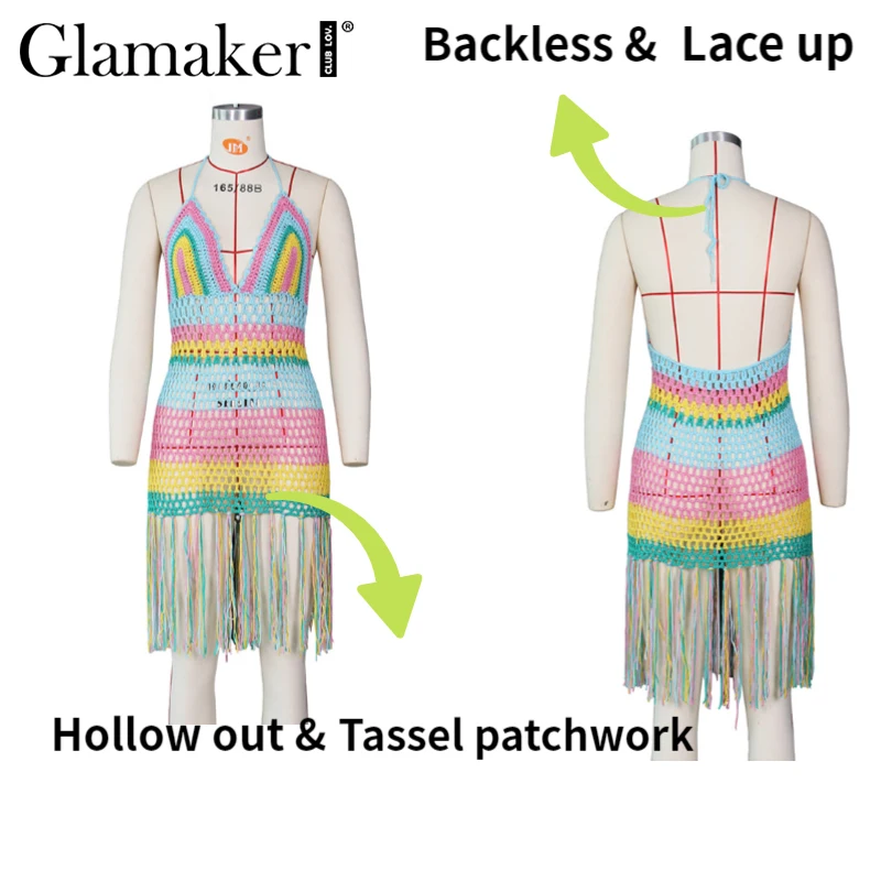 Вязаное крючком/ажурное/без рукавов/без бретелек/облегающее/на шнуровке/с кисточками в стиле пэчворк
