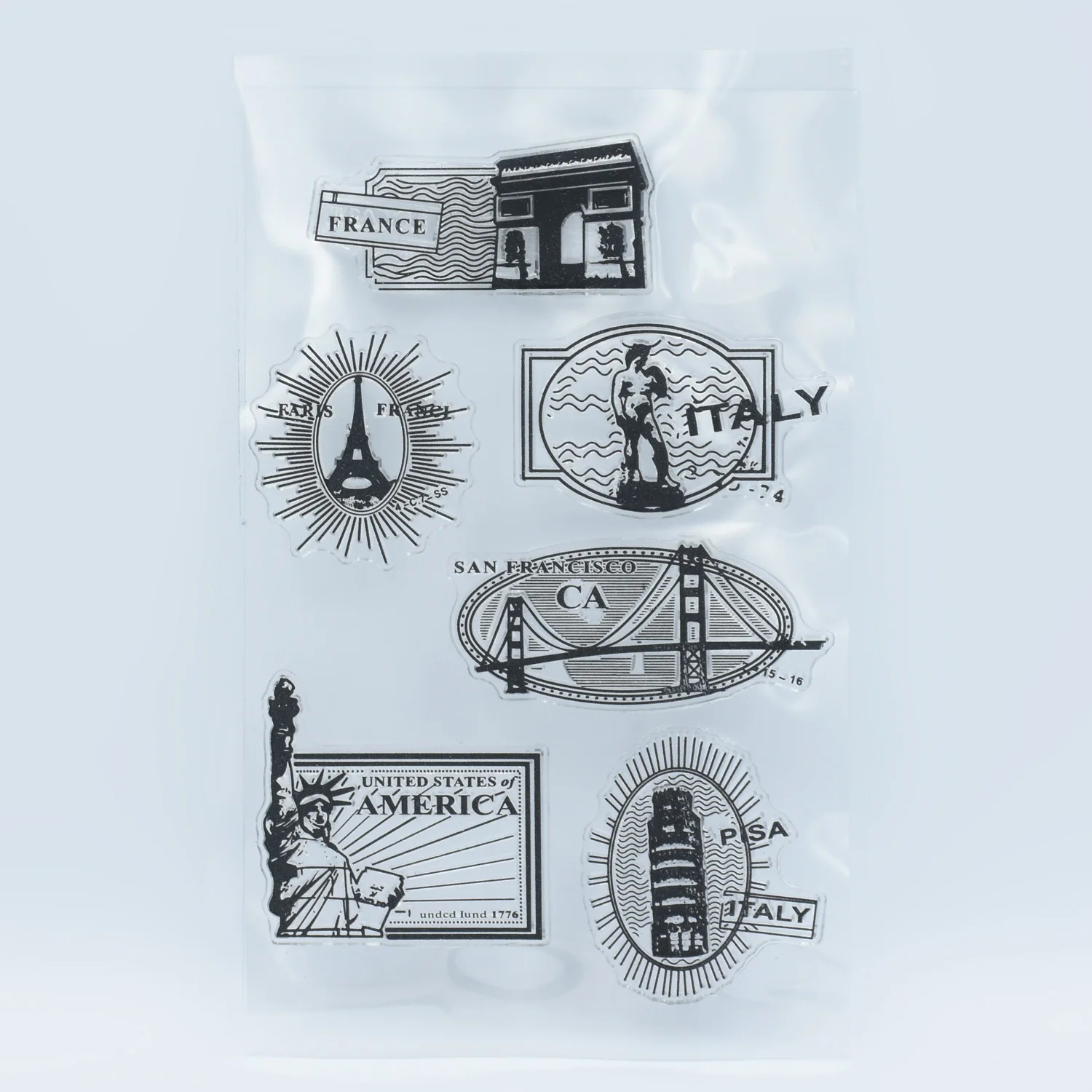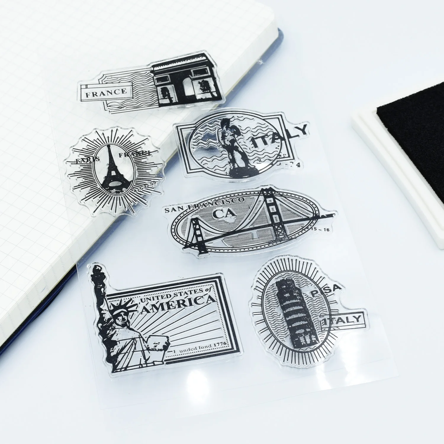 Название: прозрачный штамп Размер штампа: 110x160мм Тип товара: прозрачный штамп Пол: унисекс Многоразовые и прочные чистые марки. Туристические марки для ноутбука путешественника, резиновый штамп, четкая прозрачная печать, дорожный паспорт. Три простых шага для использования ваших новых марок! 1. Просто снимите штамп с прозрачного листа и поместите его на прозрачный акриловый монтажный блок. Клеи не требуются, так как штампы цепляются за блоки. 2. Нанесите чернила на штамп. 3. Поместите изображение на нужную поверхность и плотно нажмите вниз.