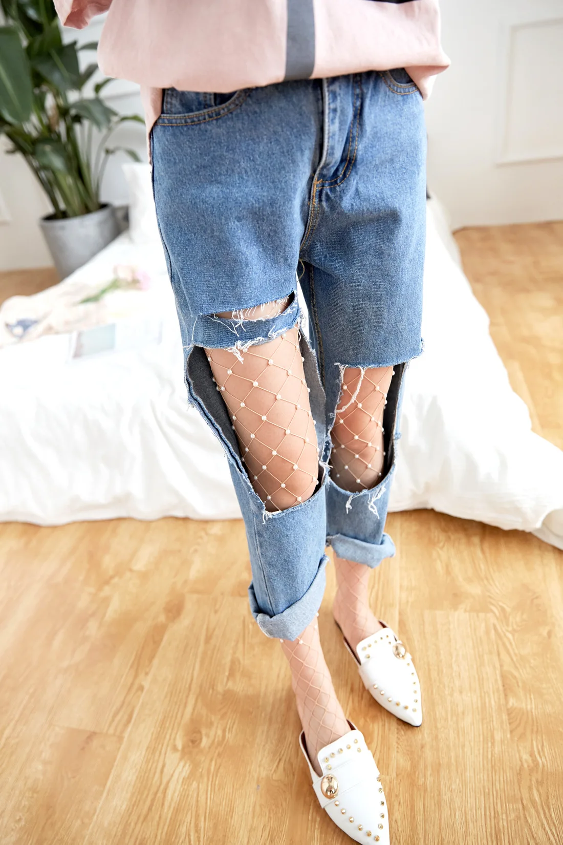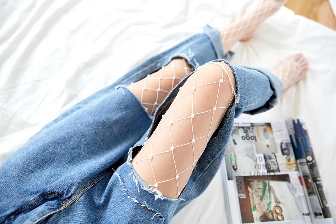 Персонализированные перламутровые сетчатые колготки для женщин и девушек, сексуальные большие ажурные колготки для девушек, тонкие весенние летние модные повседневные дикие колготки Материал: нейлон + акрил Свободный размер.