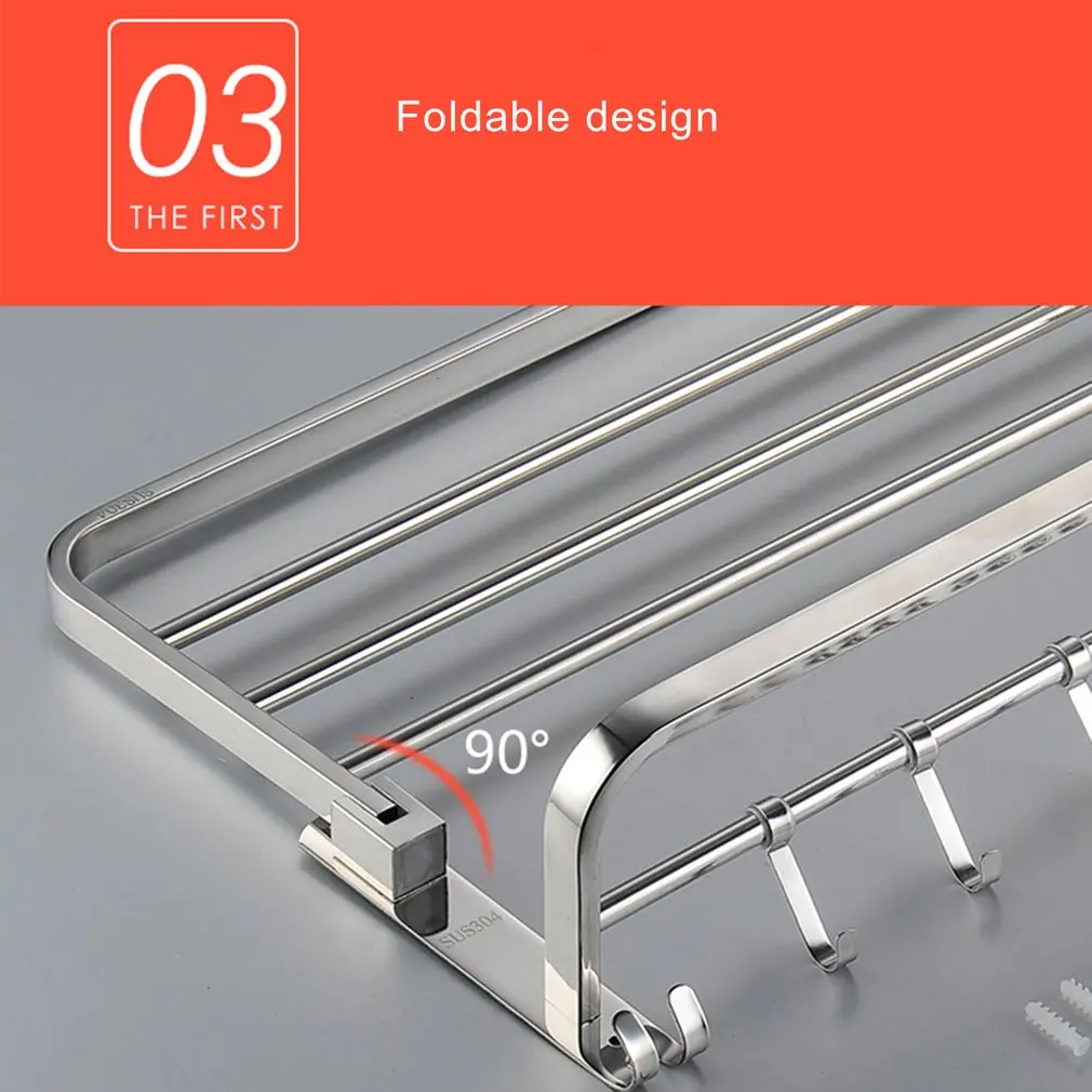 Складной держатель для полотенец из нержавеющей стали, вешалка для хранения кухонных полотенец, вешалка для одежды с крючками