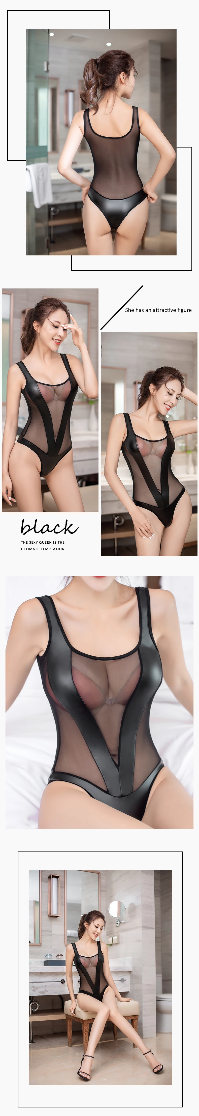 Сексуальный прозрачный купальник из искусственной сетки, черный купальный костюм, женские топы, стринги с высоким вырезом, купальный костюм Sukumizu, боди, чулки