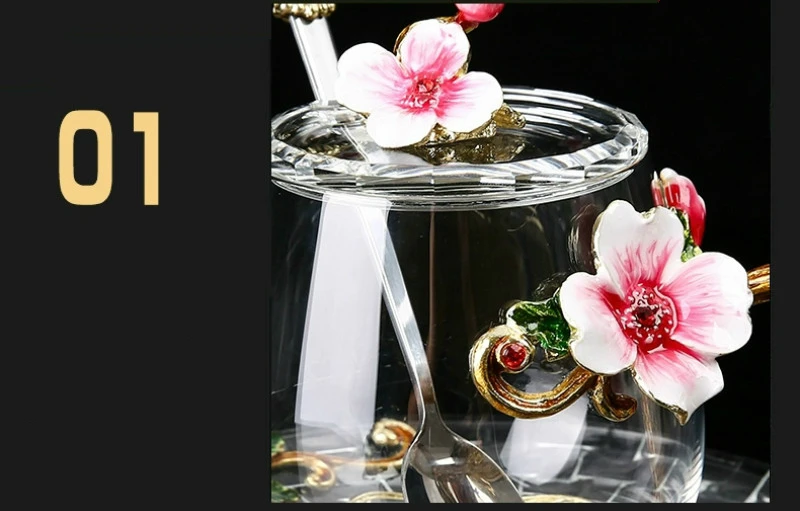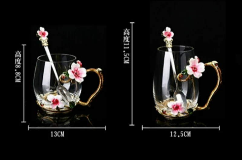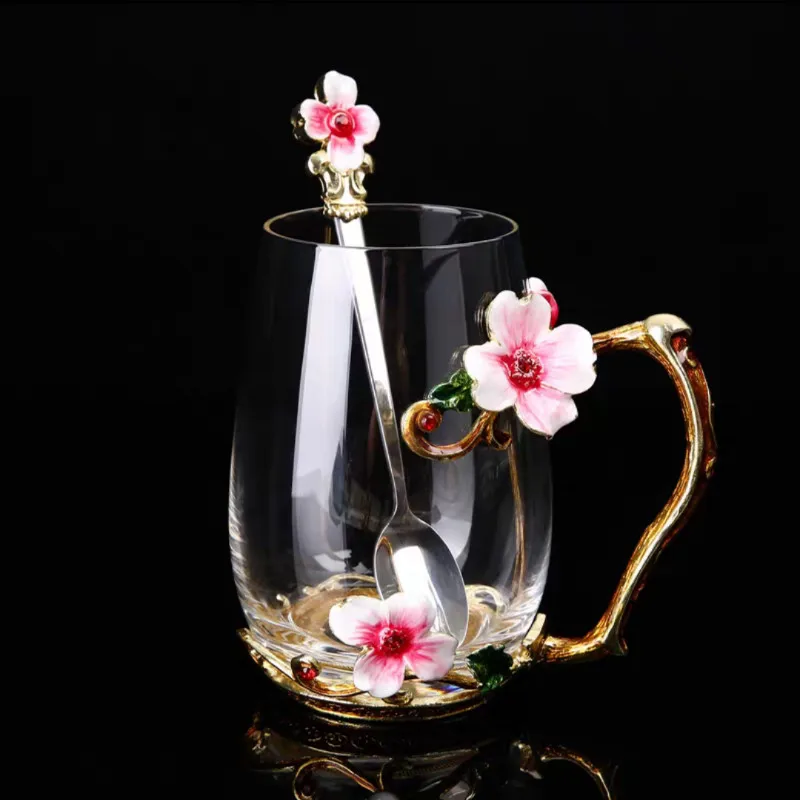 Красота и Новинка, эмалированная кофейная кружка, чайные стеклянные чашки с цветами для горячих и холодных напитков, чайная чашка, ложка, набор, идеальный свадебный подарок