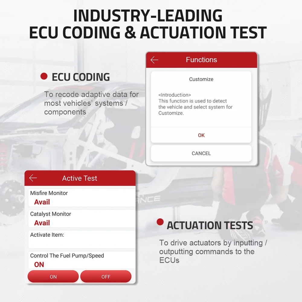 Использует приложение ThinkDiag, чтобы проверить, является ли привод нормальным, без использования управления транспортным средством, чтобы получить значительное повышение эффективности: [Включите вентилятор радиатора | Модулировать дроссельную заслонку | Открыть/закрыть окна | Управлять зеркалами | Включить/выключить свет | Включить/выключить звуковой сигнал | Проверить дверной замок...]
