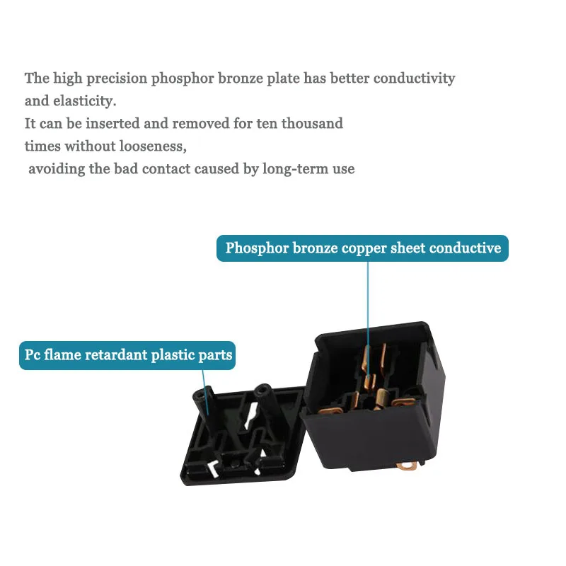 Высокоточная фосфорная бронзовая пластина обладает лучшей проводимостью и эластичностью. Он может быть вставлен и удален в течение десяти тысяч раз без ослабления, избегая плохого контакта, вызванного длительным использованием.