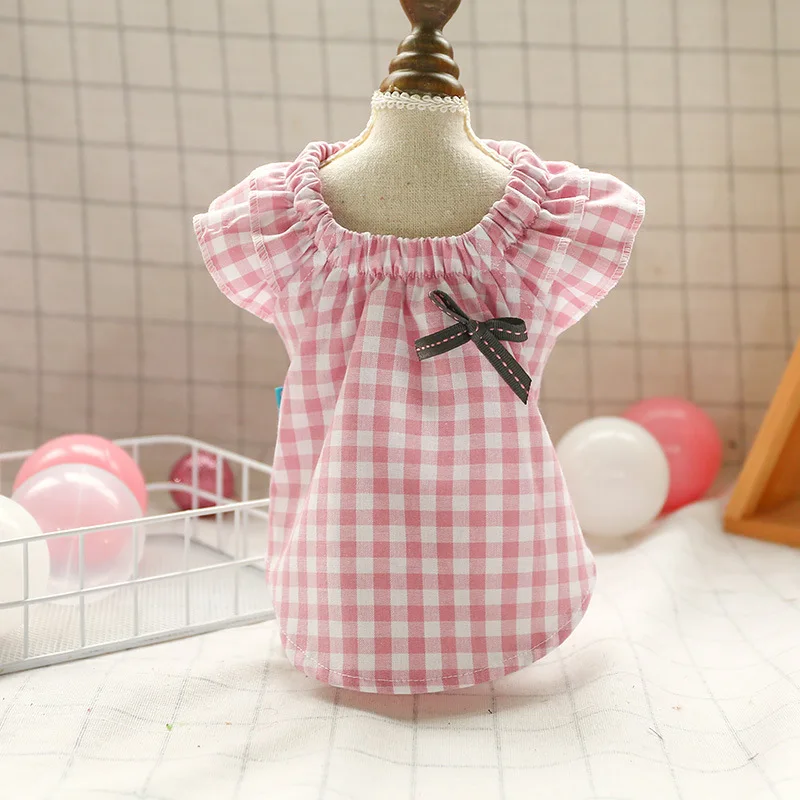 Клетчатые хлопковые рубашки с бантиками для питомцев, одежда для маленьких средних животных, щенков, собак, весенне-летние костюмы для кошек, свежий наряд для йоркширских мышей