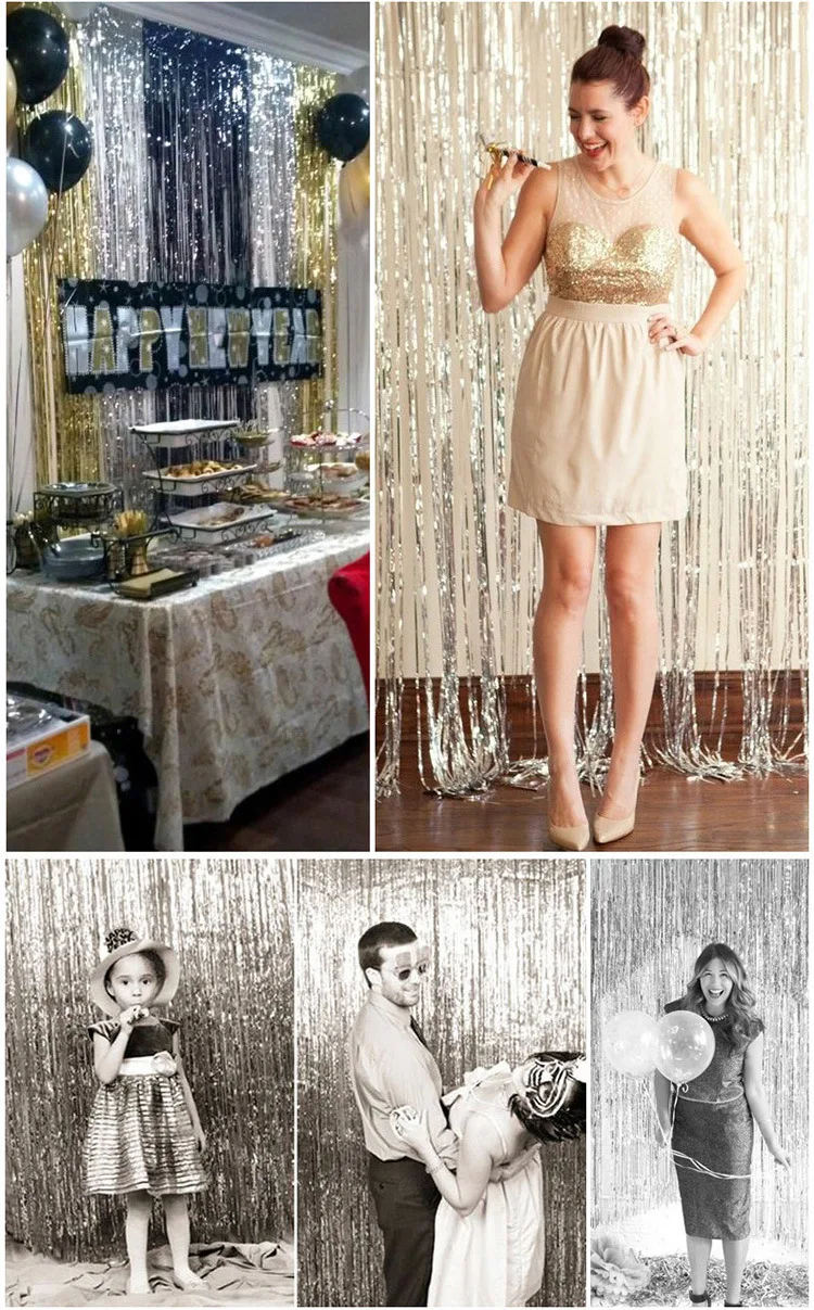1 м * 1 м и 1 м * 2 м занавески от дождя, Рождество, день рождения, праздничные атрибуты, фон для свадебной комнаты, настенная занавеска с кисточками Материал: эффект ПЭТ Цвет: золото, серебро, розовое золото, зеленый, синий, красная роза Название продукта: радиевое излучение, ледяной дождь