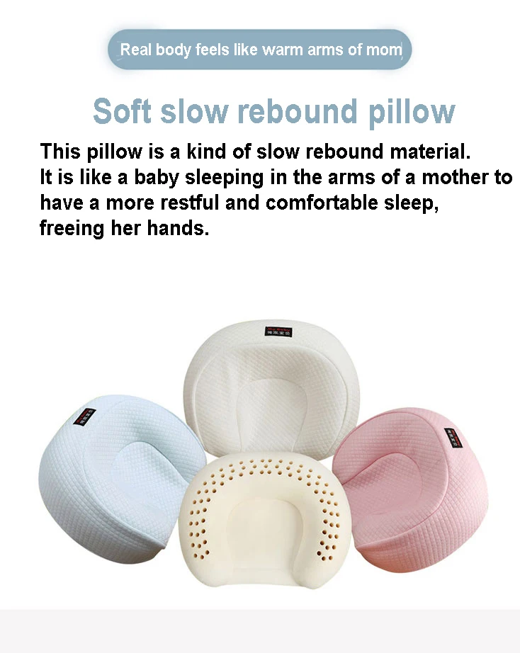 This pillow is a kind of slow rebound material. It is like a baby sleeping in the arms of a mother to have a more restful and comfortable sleep, freeing her hands.
