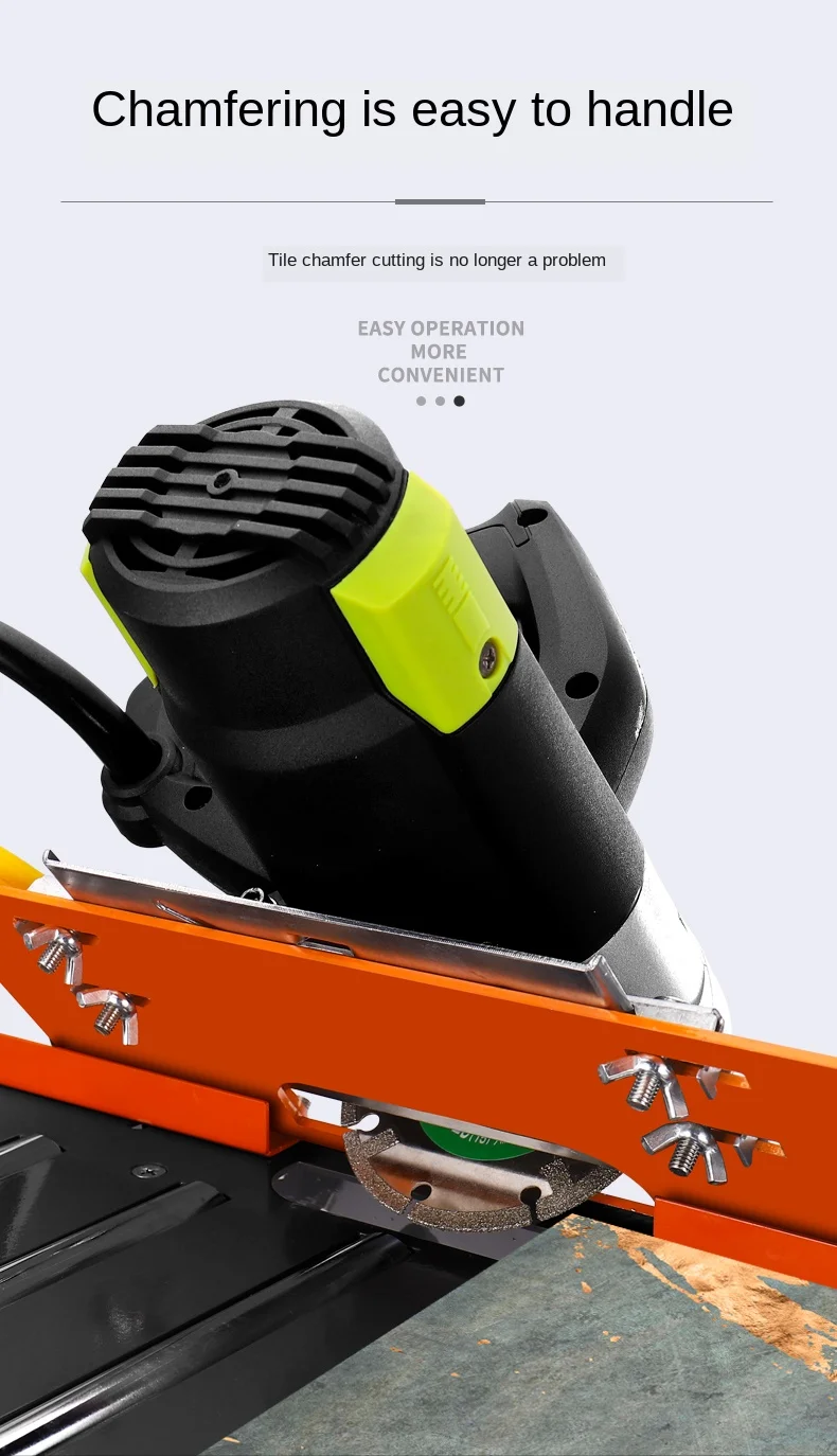 Модель фаски машины: YB1106 частота напряжения: 220 В/50 Гц Размер продукта: 60*40*31 см Мощность двигателя: 2300 Вт характеристики продукта: конструкция направляющей является более трудосберегающей скоростью без нагрузки: 13000р/мин характеристики продукта: скошенная кромка Диаметр пильного диска: 100 мм-120 мм Область применения: 10-200 см фаски для фаски плитки Модель машины: 125A частота напряжения: 220 В/50 Гц размер изделия: 60*40*31 см Мощность двигателя: 1800 Вт характеристики продукта: конструкция направляющей более трудоемкая Скорость без нагрузки: 13000р/мин характеристики продукта: диаметр режущей кромки: 100 мм-120 мм Область применения: 10 см-200 см фаски плитки эта Пыленепроницаемая фаски машина подходит для портативной резки с регулируемой глубиной резки. Он имеет лучший эффект резки. У нас есть два подъемных портативных режущих станка на выбор (1800 Вт-2300 Вт). Если у вас есть какие-либо вопросы, пожалуйста, зайдите в магазин. Консультационное обслуживание.