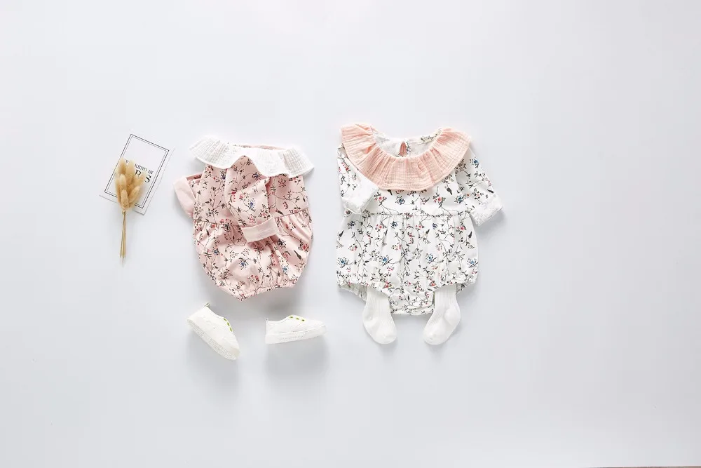 Детская одежда; Комбинезон с цветочным рисунком для новорожденных девочек; Весенний Детский сарафан; Комбинезон принцессы с длинными рукавами для маленьких девочек