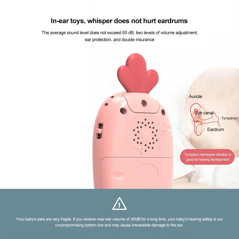 1. Милая форма, нетоксичный материал, комфортные ощущения от руки. 2. При нажатии каждой кнопки звучат разные звуки. 3. Вызывает интерес ребенка к игре с ним. 4. Улучшает координацию рук и глаз, способность идентификации, тактильное чувство. 5. Мини, можно взять в любом месте.