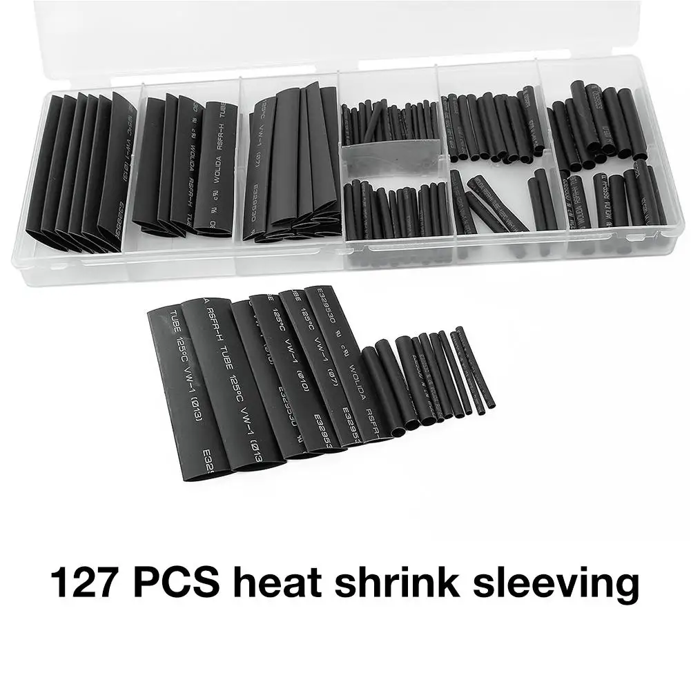 127 шт. черная Полиолефиновая термоусадочная трубка провод кабель Изолированная термоусадочная трубка