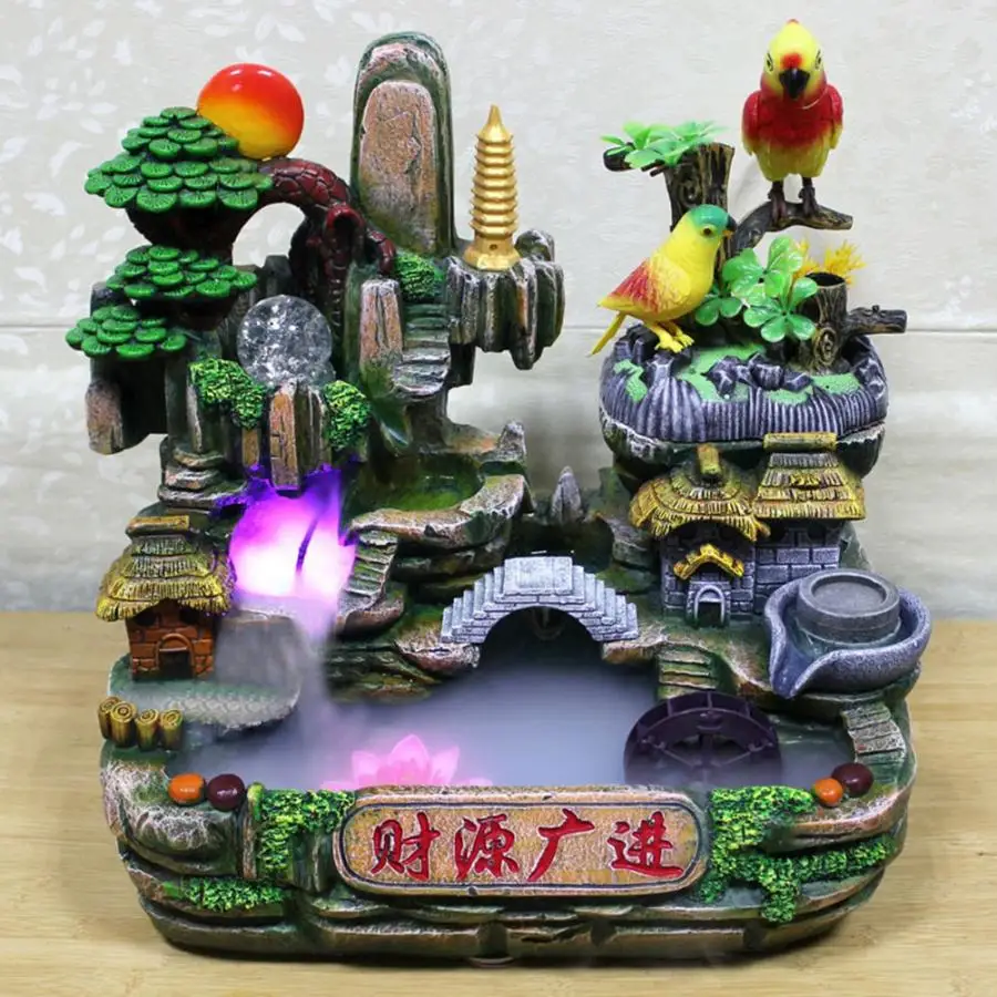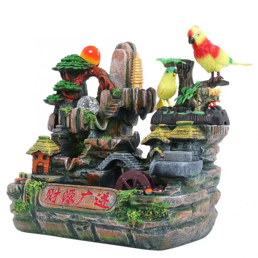 1 х фонтан орнамент в стиле бонсай 1 x имитация хрустального шарика 1 x коробка танцующей птицы (большая птица + маленькая птица + большой хвост птицы + Поддельные деревья) 1 x Круглый Орнамент 1 x 4LED с насосом 1 x 12LED распылитель