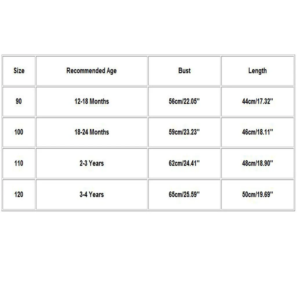 Размер Рекомендуемый возраст Бюст Длина 90 12-18 месяцев 56 см/22,05 дюйма 44 см/17,32 дюйма 100 18-24 месяцев 59 см/23,23 дюйма 46 см/18,11 дюйма 110 От 2 до 3 лет 62 см/24,41 дюйма 48 см/18,90 дюйма 120 От 3 до 4 лет 65 см/25,59 дюйма 50 см/19,69 дюйма