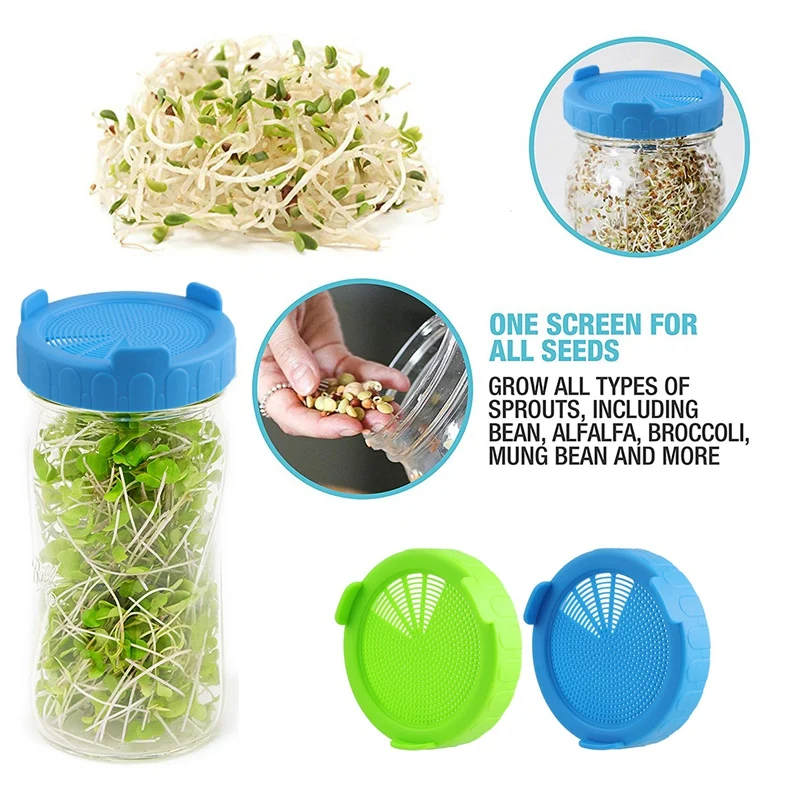 Посадки всех семян ростков фасоли: сеялки фасоли высаживают все виды богатых питательными веществами ростков фасоли, включая брокколи, люцерну, горчицу, бобы мунг и так далее. Ростки фасоли содержат витамины, волокна и железо. Превратите вашу банку с широким горлышком в машину для ростков!