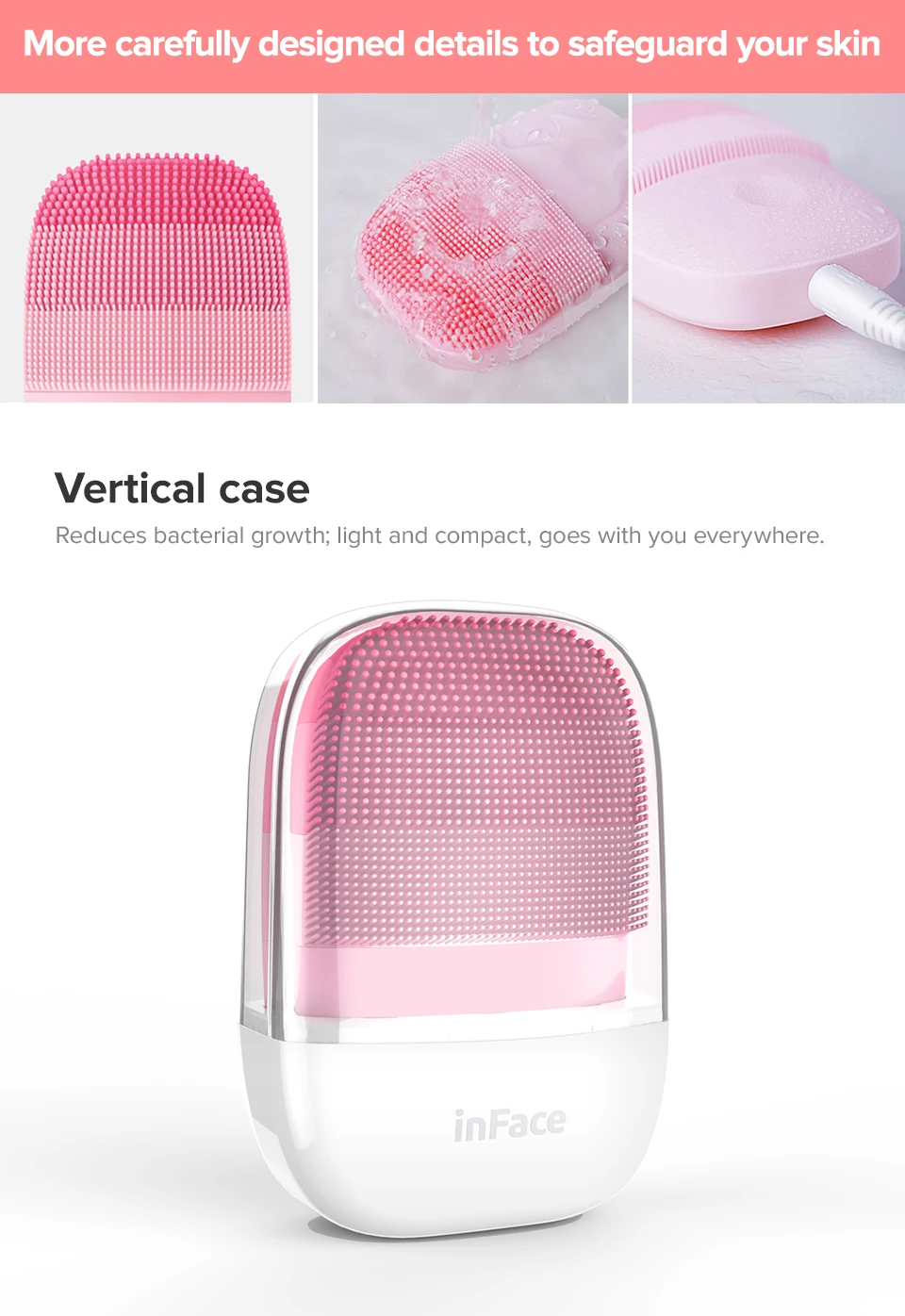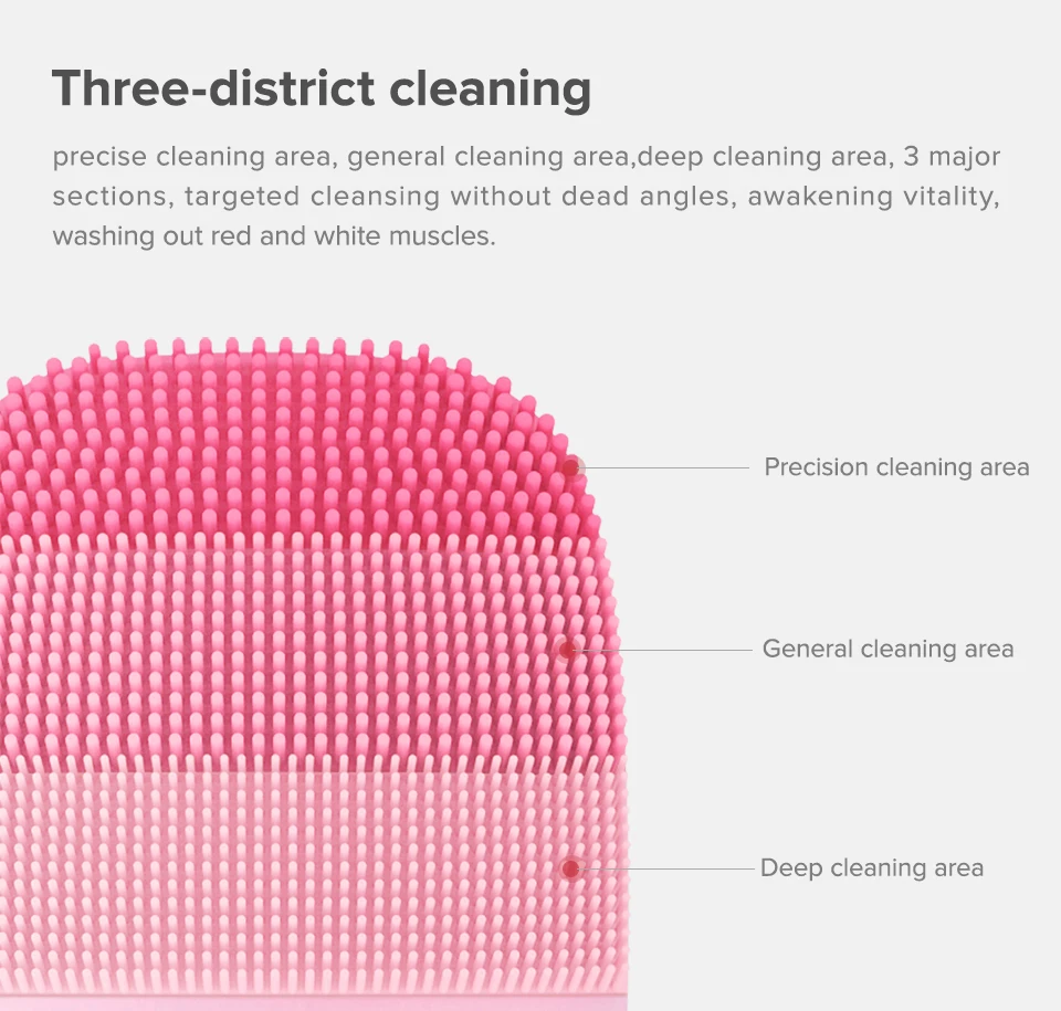 * Водонепроницаемость IPX7 * три области очистки для различных частей лица. Три очищающие настройки силы массажа дают вам более простой контроль и более интуитивное понимание сильных, средних и слабых настроек вибрации.