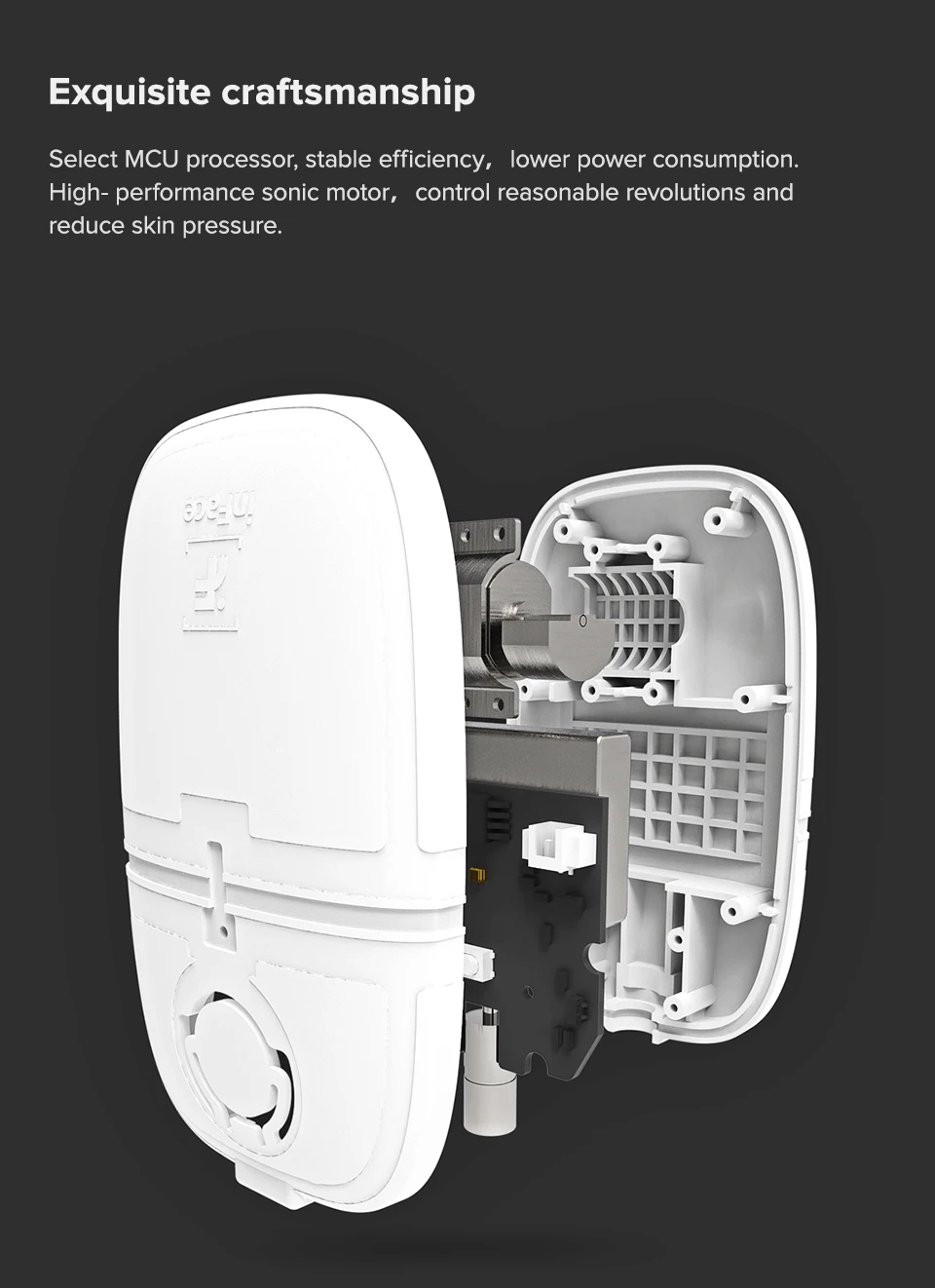Выберите процессор микроконтроллера, стабильную эффективность, низкое энергопотребление. Высокопроизводительный звуковой двигатель, контролирует разумные обороты и снижает давление кожи.