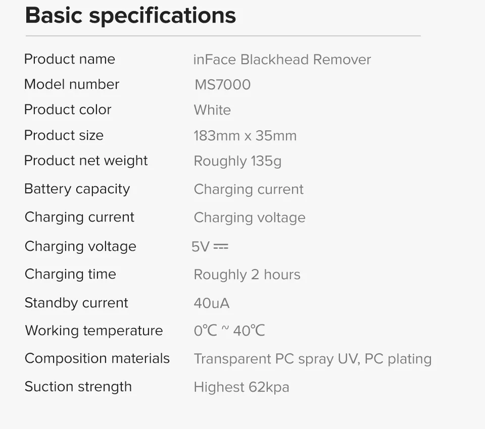 Мощный аккумулятор polumer, который обеспечивает Мощное всасывание; Умный дизайн воздушного клапана, попрощайтесь против черных точек и испытайте новый мир «чистой» кожи.