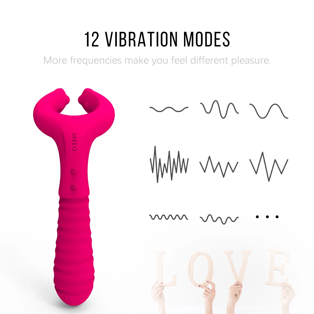1. Цвет: розовый/фиолетовый 2. Размер изделия: 195*65*38 мм 3. Режим вибрации: 12-частотная вибрация 4. Питание: Магнитная Зарядка USB