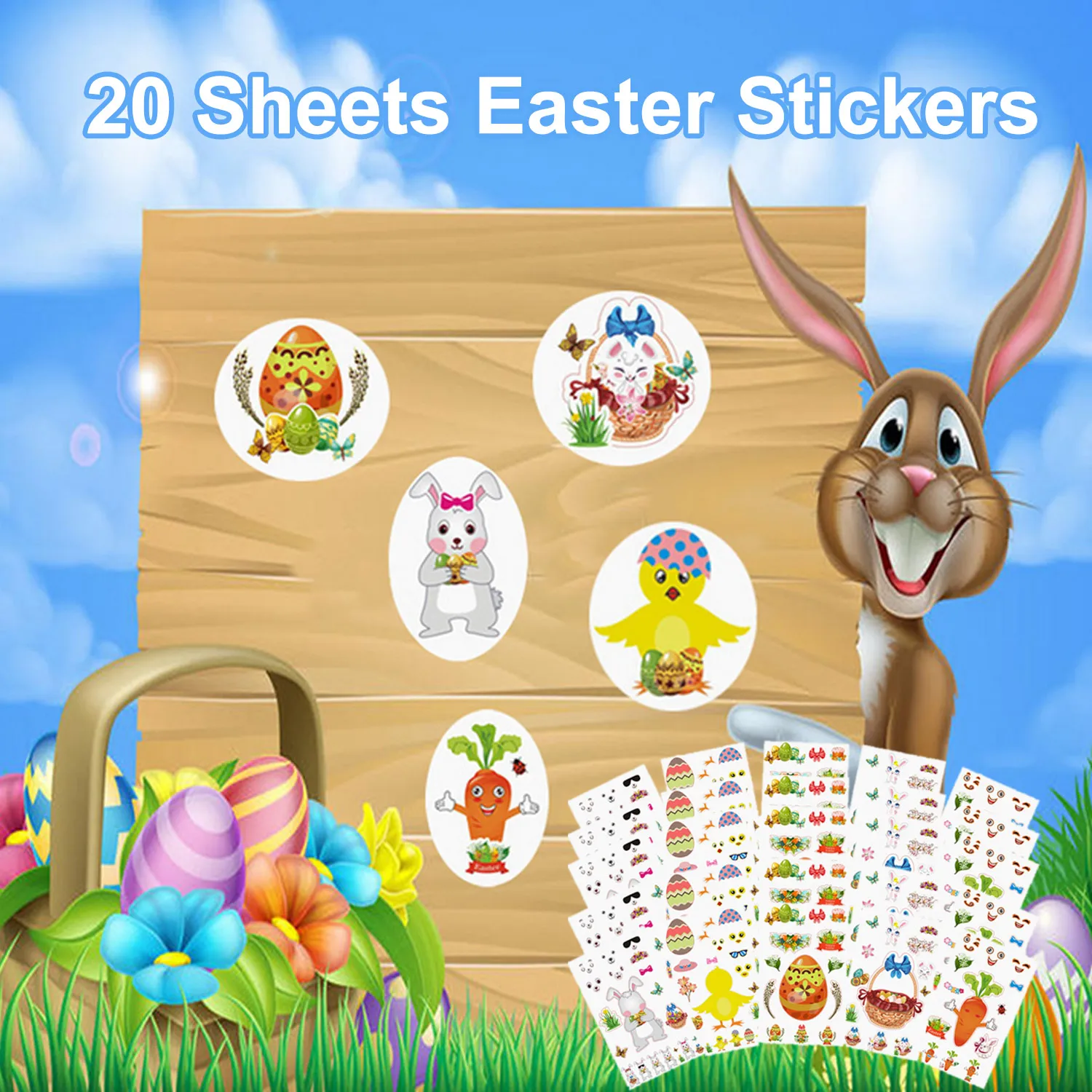 20 листов пасхальных наклеек, сделай сам, пасхальное яйцо, кролик, Цыпленок, стильные украшения, вечерние товары для игр