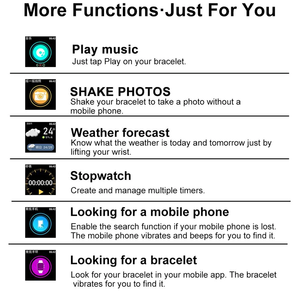 * 15. Язык отображения браслета: упрощенный китайский, английский