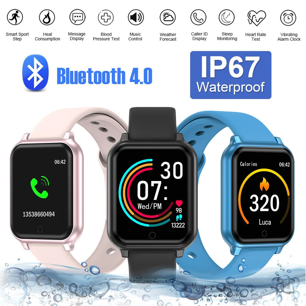 Название продукта:Умный Браслет, квадратный, модный, спортивный, водонепроницаемый, сердечный ритм, здоровье, шаг, браслет, монитор сердечного ритма, кровяное давление, наручные часы