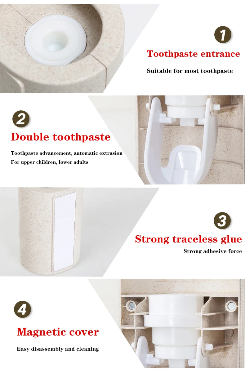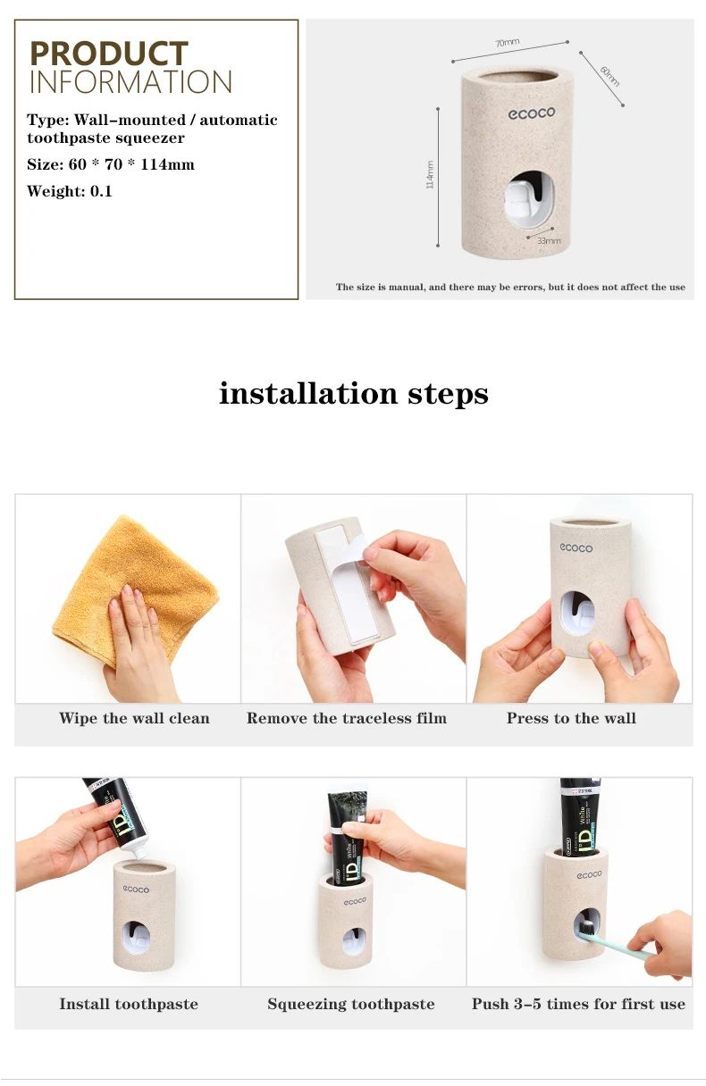 Автоматический дозатор для зубной пасты Описание продукта: Материал изделия: пластик, силикон Работает с любой гладкой поверхностью. Подходит для семейного использования, не только хорошо выглядит, но и очень чисто. Гигиенические и удобные, подходят для кухни, ванной, отеля и т. д. Поддерживает оптовые поставки и прямые поставки. Размер: прибл. 114x60x70mm Посылка 1 шт., отжиматели зубной пасты Примечание: В комплекте только одно устройство для отжима зубной пасты