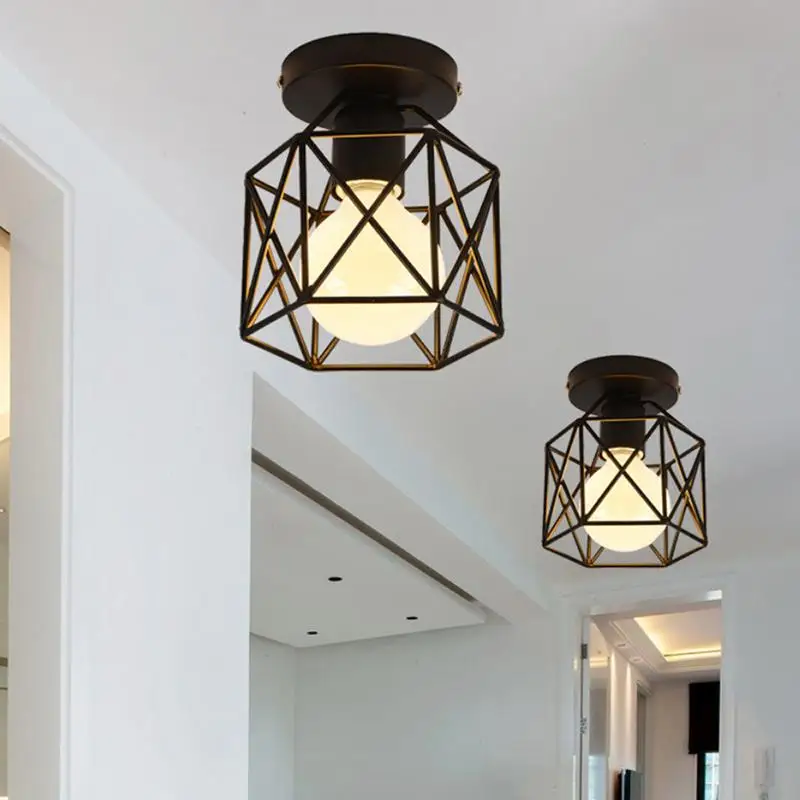 Винтажный абажур в виде клетки изготовлен из железа и имеет простой дизайн для создания ретро-и промышленного стиля, что является идеальным украшением для баров и других особых стилей оформления.