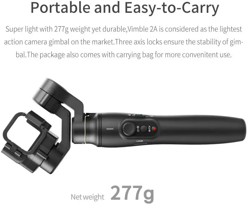 1/4 "резьбовое отверстие в нижней части ручки для крепления штатива или других аксессуаров Micro USB порт на левой стороне ручки для зарядки карданного шарнира