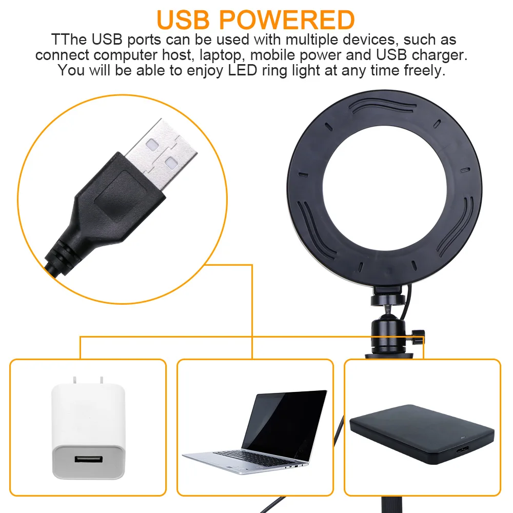 Особенности: Светильник с регулируемой яркостью и тремя режимами Кольцевой светильник с 72 шт. светильник бусины, который может быть отрегулировано по светильник цвета между теплый светильник, мягкий светильник и белый светильник, самодовлеющей ваш различного использования ситуациях. Вы также можете легко изменить яркость своего светильник с помощью кнопки управления. 360 градусов Поворотный Кольцевой светильник может поворачиваться на 360 градусов, чтобы обеспечить лучший светильник для фотосъемки телефона. Телескопическая Роба Телескопическая ограда удобна для людей различной высоты, которая может быть скорректирована в соответствии с подходящей высотой в соответствии с практическим положением. Питаемые через USB порт Usb-порты можно использовать с несколькими устройствами, такими как подключение к хосту компьютера, ноутбуку, мобильному питанию и зарядному устройству USB. Вы сможете наслаждаться светодиодный светильник в любое время. Сфера применения Кольцевой светильник широко применяется для наружного фото светильник, светильник портретной съемке, на модных показах, рекламная фотосъемка, съемка видео и т. д. Параметры: Тип: Кольцевой светильник Количество: купальное полотенце, 1 шт Материал: АБС + ПП + углеродистая сталь + алюминиевый сплав Цвет: черный Срок службы: 3 Вт часов Рабочий ток: 5 В постоянного тока Угол освещения: 120 градусов CRI/RA: 95 Интерфейс: 1/4 резьбовой интерфейс Светильник источник: 72 шт. светильник бусины Световой поток: 1440-1800LM Светильник Цвет: 2200-12000k Мощность: 8 Вт Светильник Диаметр кольца: 16 см/6,29 дюйма Светильник внутренний диаметр кольца: 10 см/3,93 дюйма Вес нетто: 459 г/16,19 унций Посылка: 1 * кольцевой светильник 1 * телескопический кронштейн 1 * посылка коробка