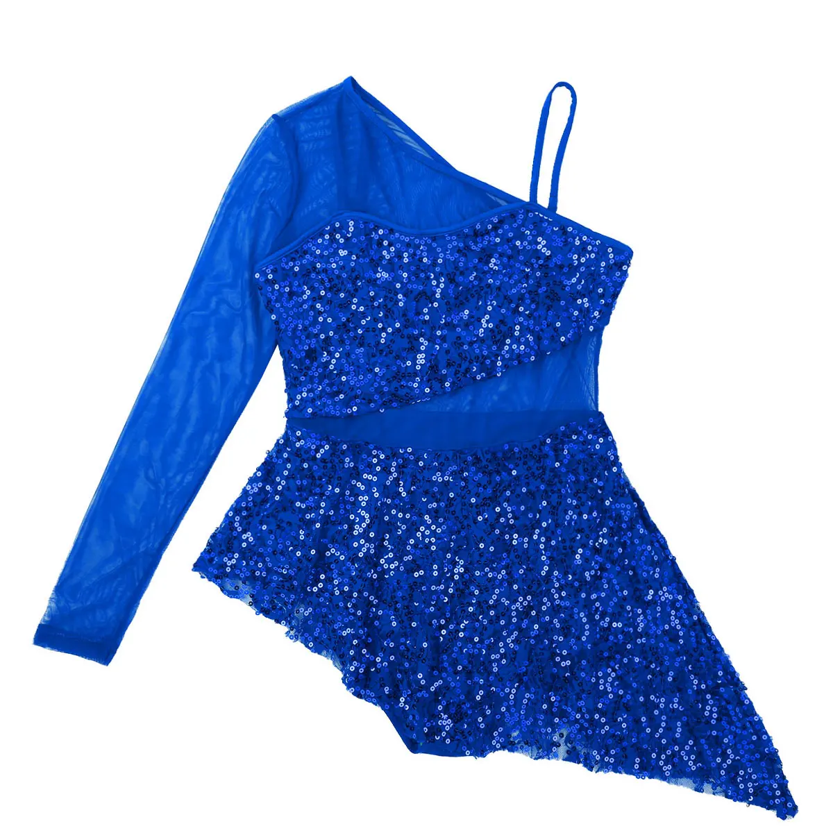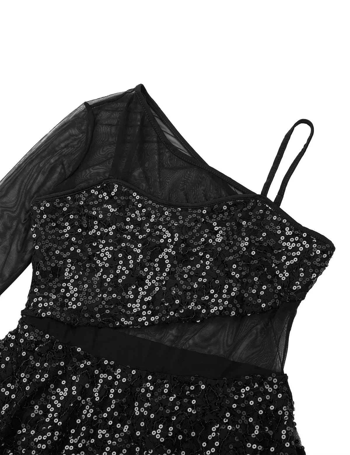 Регулируемые бретельки с одним длинным рукавом, Блестящий лиф с блестками и отвесная сетчатая соединенная Талия, элегантная и очаровательная.