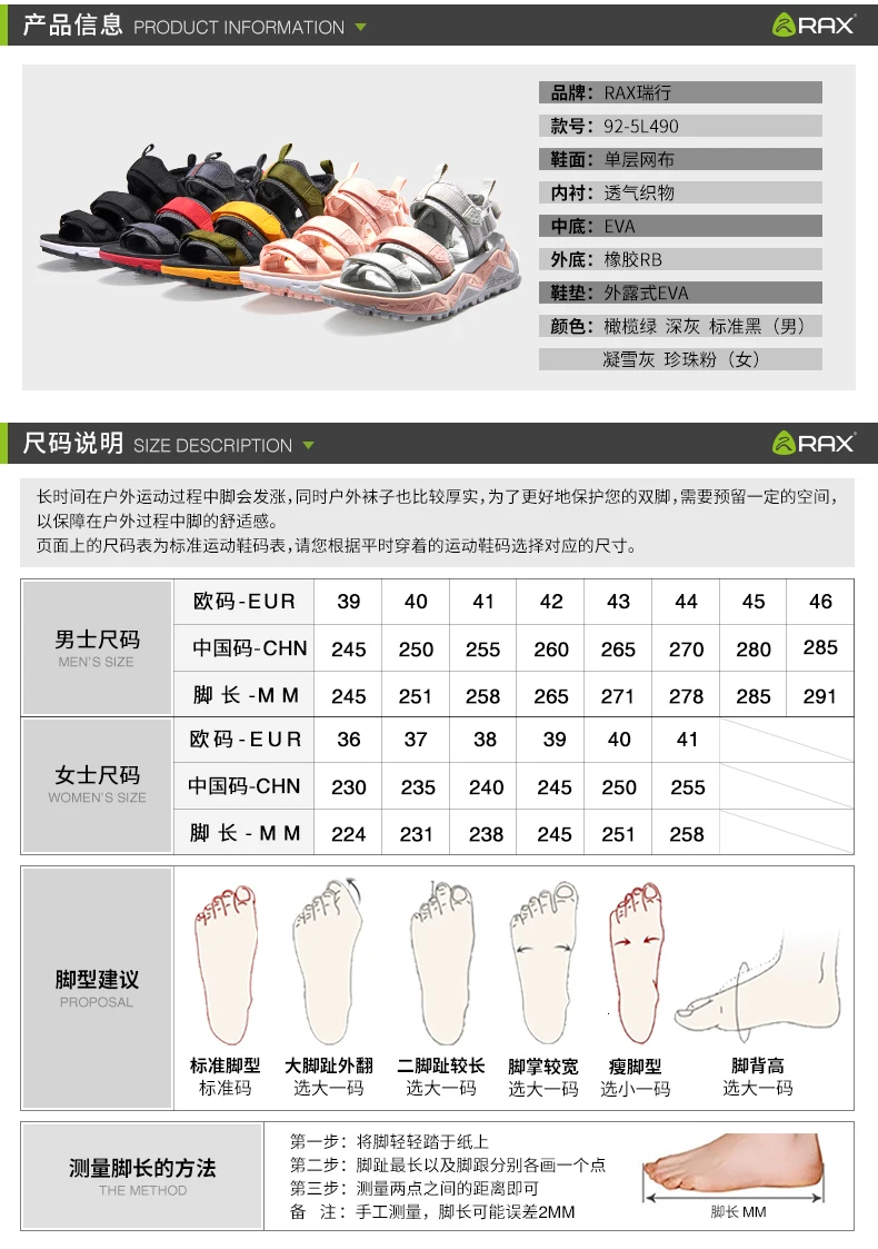 Мужские кроссовки для походов Rax, новые дышащие спортивные кроссовки для активного отдыха, для горного туризма, для весны, 2019 Обратите внимание на размер Пожалуйста, выберите европейский размер в соответствии с длиной стопы или длиной стельки. Прежде чем выбрать размер, вам лучше измерить длину вашей стопы или длину стельки. Таблица размеров: Европейские размеры 36, 37, 38, Размеры 39-40 41, 42, 43 размеры 44, 45 46 CHN Размер 230 235 240 245 250 255 260 265 270 280 285 Длина стельки (см) 23 23,5 24 24,5 25,5 26 26,5 27 28 28,5 29