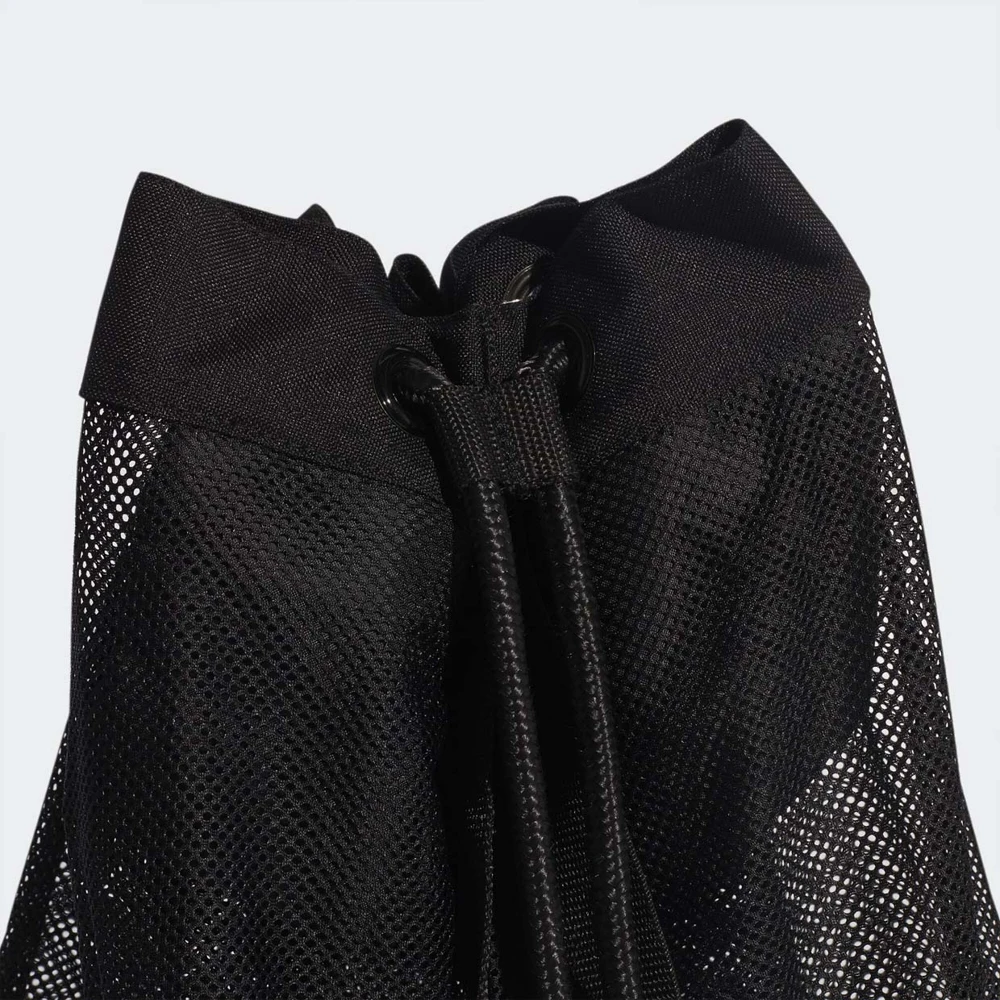 Сетка из дышащего материала для хранения мячей. Быстро и широко раскрывается с помощью шнура. Удобные наплечные ремни для переноски.