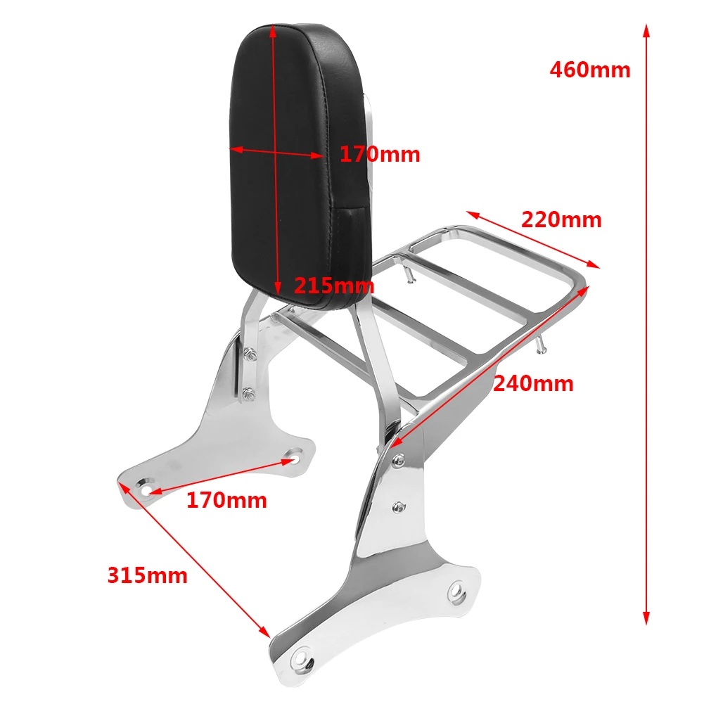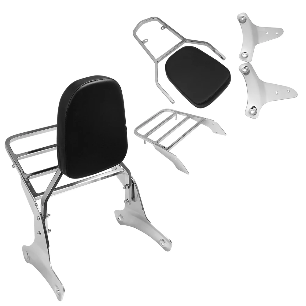 Особенности: Поставляется с задней полкой для большего количества багажных мест Стальная пластина спинки обеспечивает прочность Мягкий коврик из синтетической кожи делает пассажира более комфортными Простота установки, модификации не требуется Параметры: Отделка поверхности: хром Материал: сталь, синтетическая кожа Применимость: Подходит для Honda Shadow VT750 C2 RC44 / VT400 1997-2003 Пожалуйста, проверьте размер, чтобы подтвердить, что он подходит для вашего мотоцикла, прежде чем купить Посылка включает в себя: 1x спинки пластины 1x спинка накладка 1x Чемодан стеллаж для выставки товаров 2X Боковые Кронштейны-пластины (левый и правый) Монтажные болты и винты (для pad, багажной стойки и пластины спинки) Примечание: Инструкция по монтажу и крепежные болты сбоку не включены.