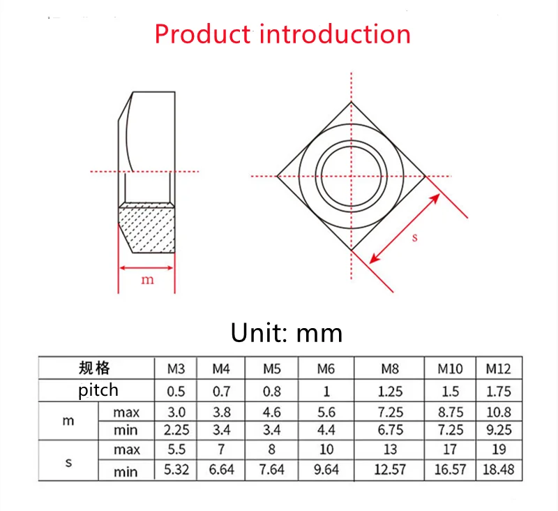 /20/50 шт M3 M4 M5 M6 DIN557 GB39 304 A2-70 Нержавеющая сталь Метрическая Резьбовая квадратная гайка квадрат