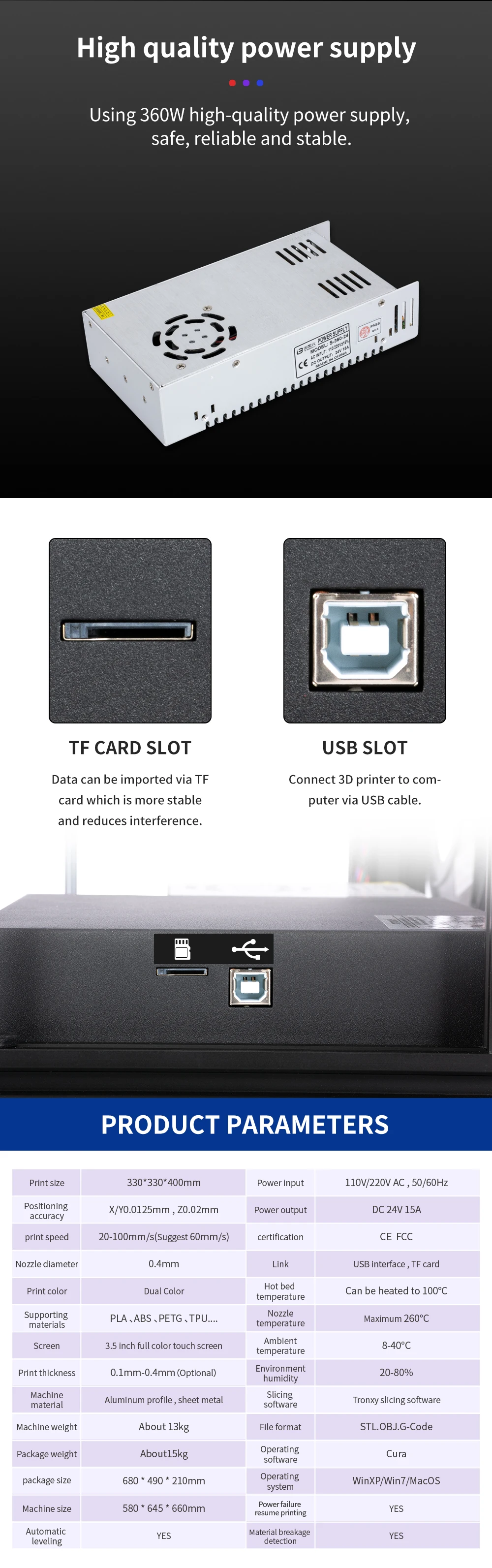 Размер печати: 330*330*400 мм