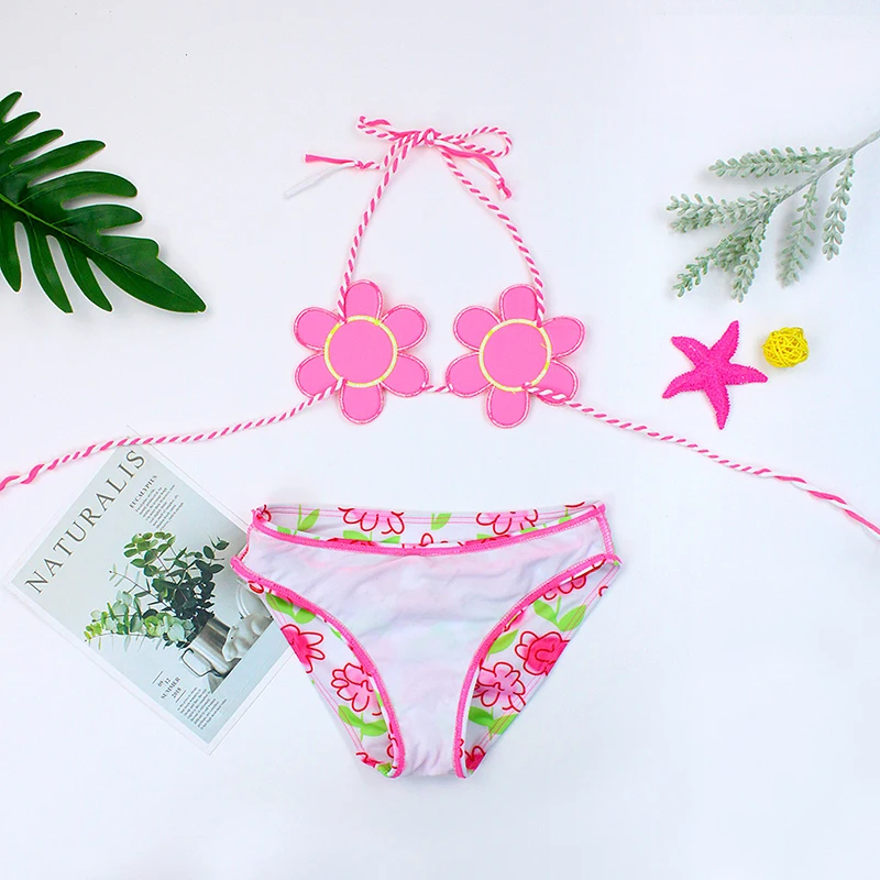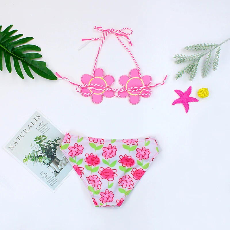 Бикини с цветочным рисунком для детей, купальник для девочки, пляжная одежда, купальные костюмы с цветочным рисунком, 2 предмета, купальный костюм, милые купальники, Детские бикини