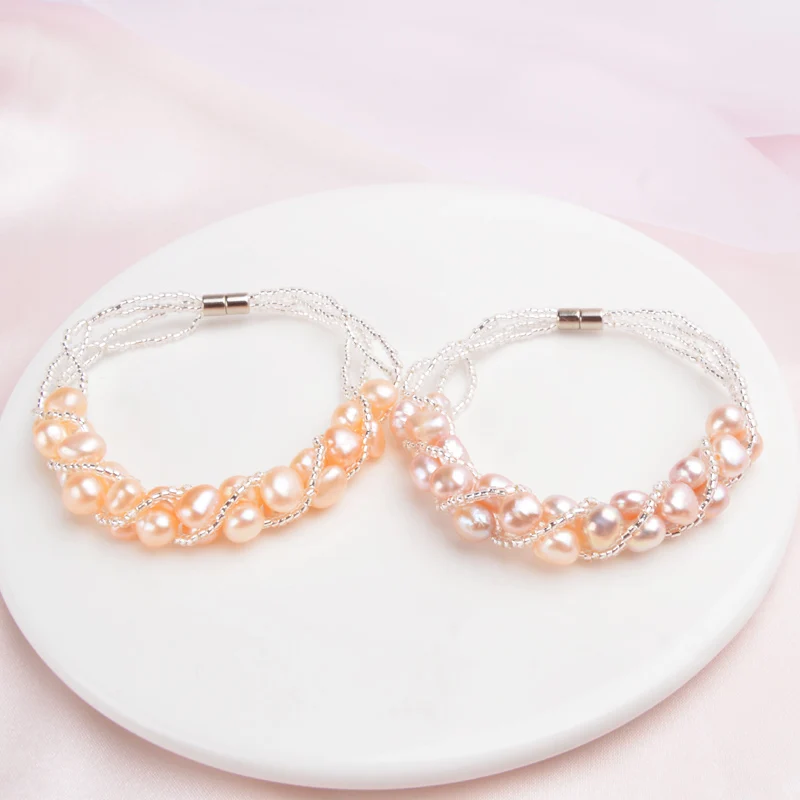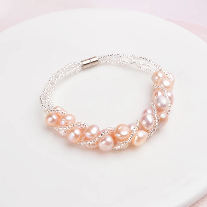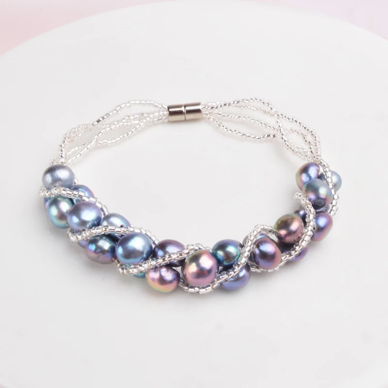 Бренд: ASHIQI Размер жемчуга: 7-8 мм Форма жемчуга: барокко Цвет жемчуга: белый/розовый/фиолетовый/черный/серый Жемчужный Блеск: очень хорошо Поверхность жемчуга: некоторые изъяны Окружность браслета: около 19 см Застежка браслета: магнитная застежка Упаковка: сумка для ювелирных изделий Ручная работа, особый подарок!