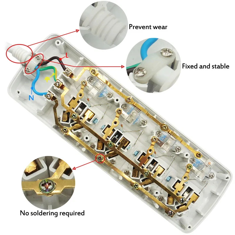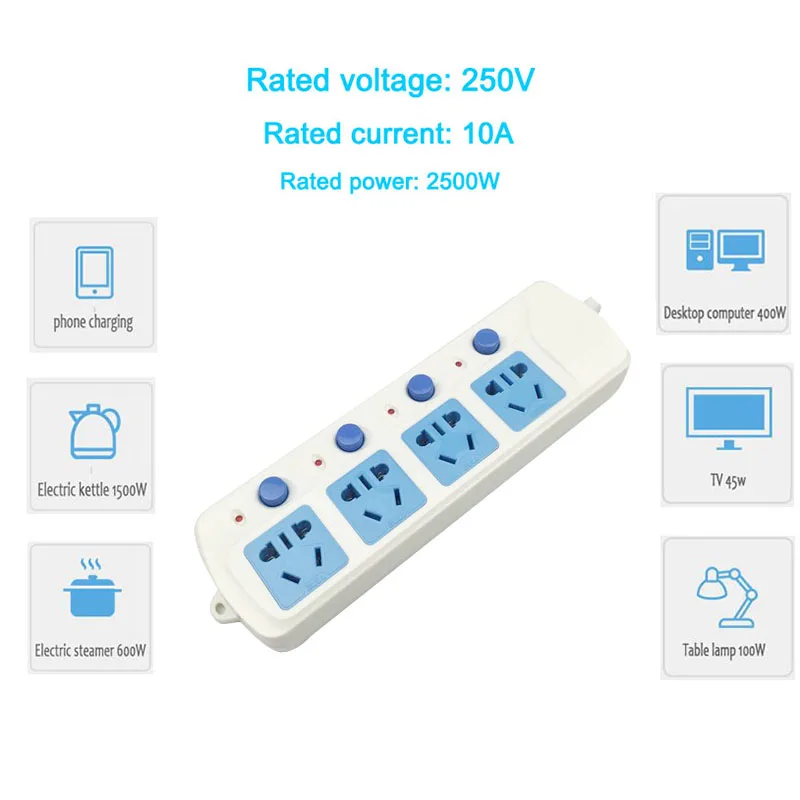 Атрибут продукта: Номинальный ток: 10A Номинальное напряжение: 250 В Номинальная мощность: 2500 Вт Большое расстояние между отверстиями: Большое расстояние между вставками, подходит для одновременного использования нескольких электрических приборов и не влияет на удобство подключения. Дверь для защиты детей: Избегайте пальцев детей или металлических предметов Вставляется в розетку, Электрическая безопасность Защита. Подвесное отверстие: Проще в использовании, подвешивая розетку на стене, больше экономии пространства; Внутренний продукт использует технологию соединения медной ленты, которая более проводящая и меньше нагревается. Длительный срок службы.