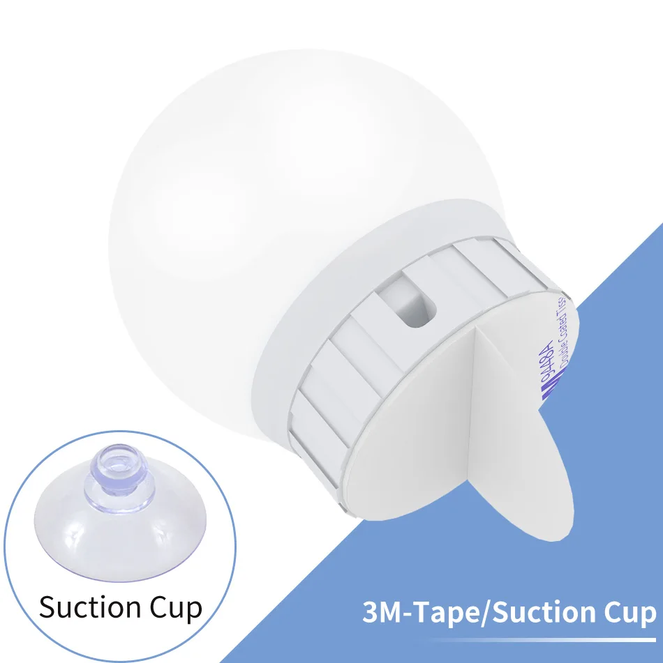 *Double-sided tapes and suction cups are provided, the bulbs can be directly and quickly sticked on mirrors with tapes or suction cups.