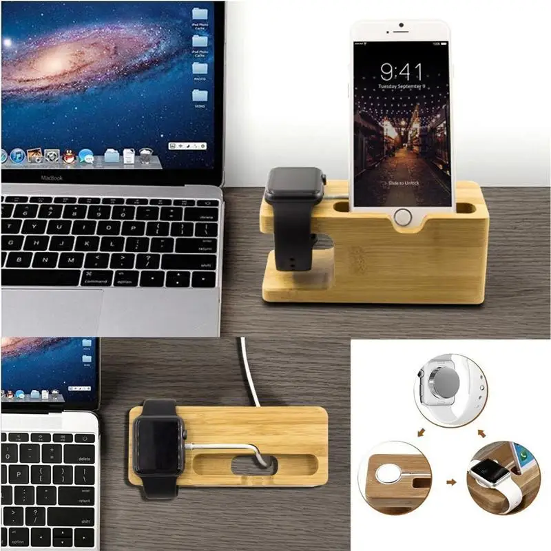 1. 100% бамбуковая подставка для Apple Watch совместима со всеми версиями для Apple Watch и всех для iPhone.