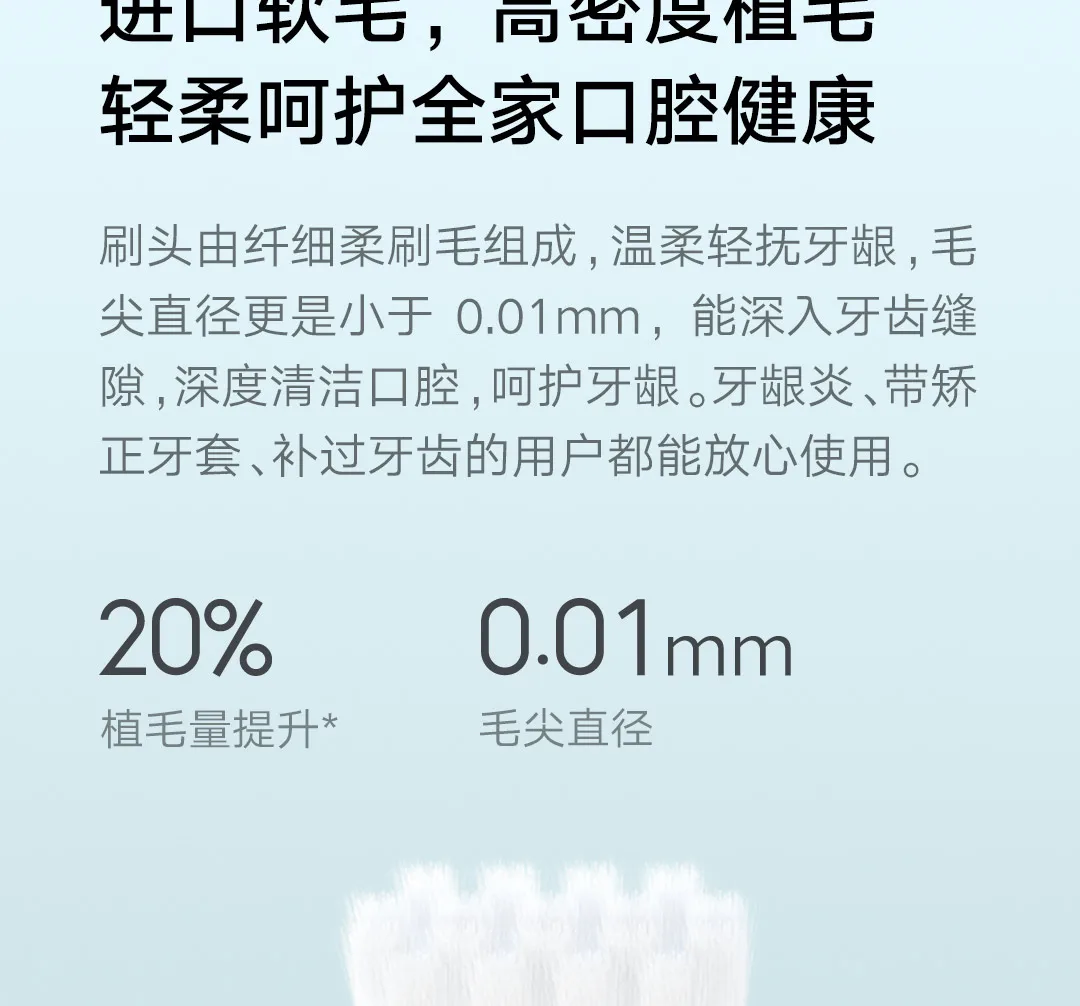 Продукт: насадки для зубной щетки для электрической зубной щетки Mijia T100 Sonic Модель: MBS302 Размер упаковки: 13,9*7,5*2,5 см